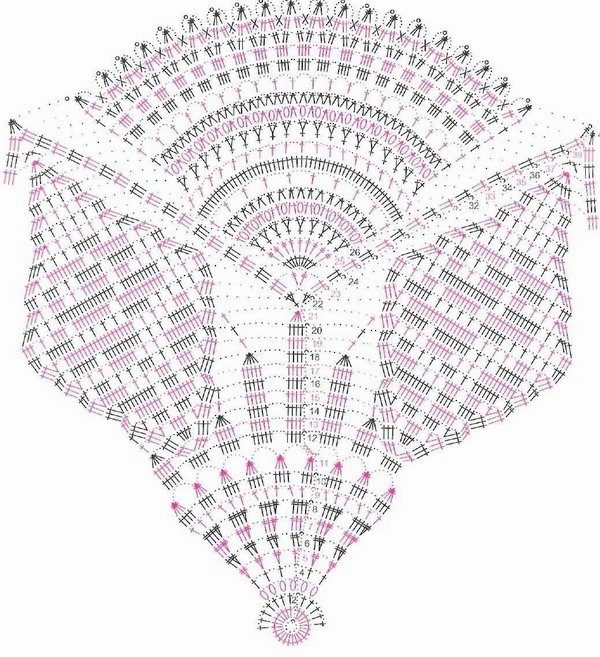 - From 17 to 36 rows again go to the grid from the double crochet and 2 vozd. P..