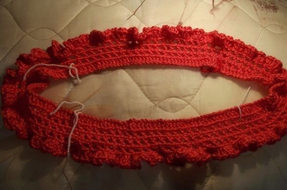- Use a red thread to dial 160 air loops and loop into a circle.