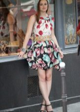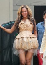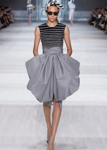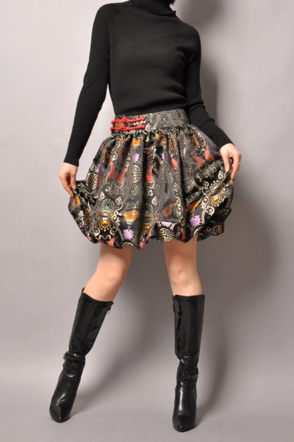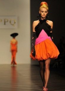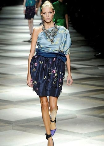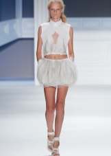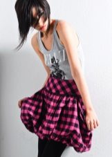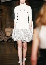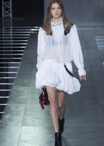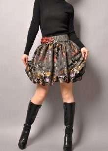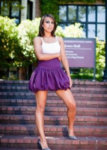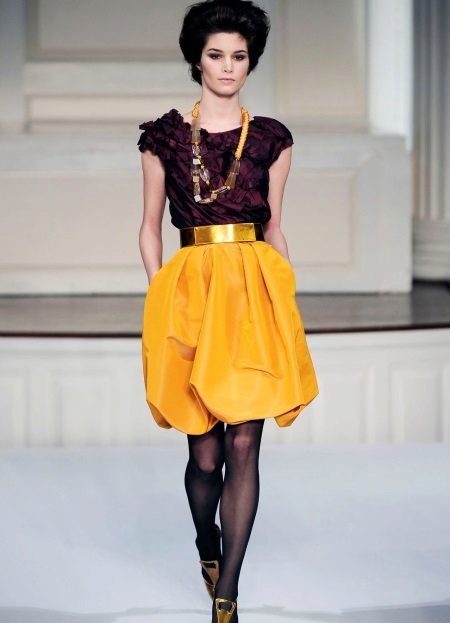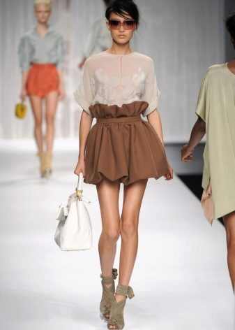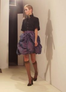 The balloon skirt has a free cut, but its peculiarity lies in the fact that with the help of a tape or a band it is assembled at the top and bottom. Designers offer mostly short lengths.