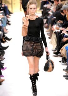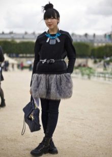 In the cold season, boots-boots will be a great addition to the balloon skirt. Low girls can visually lengthen the silhouette, if you wear a skirt, tights and shoes of the same color.