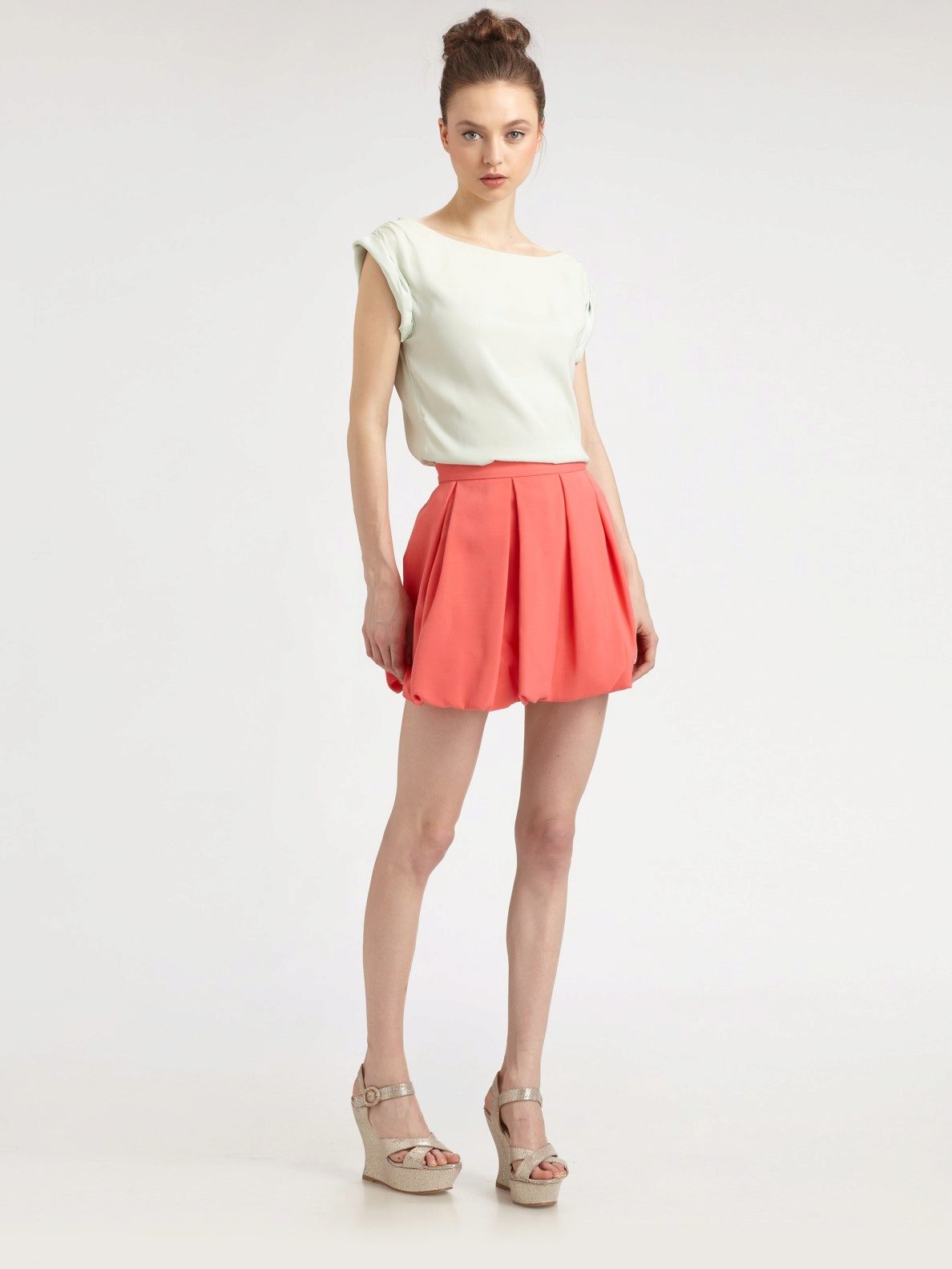 - girls with the type of figure inverted triangle can choose a balloon skirt in order to, on the contrary, increase hips and create harmony between the top and the bottom.