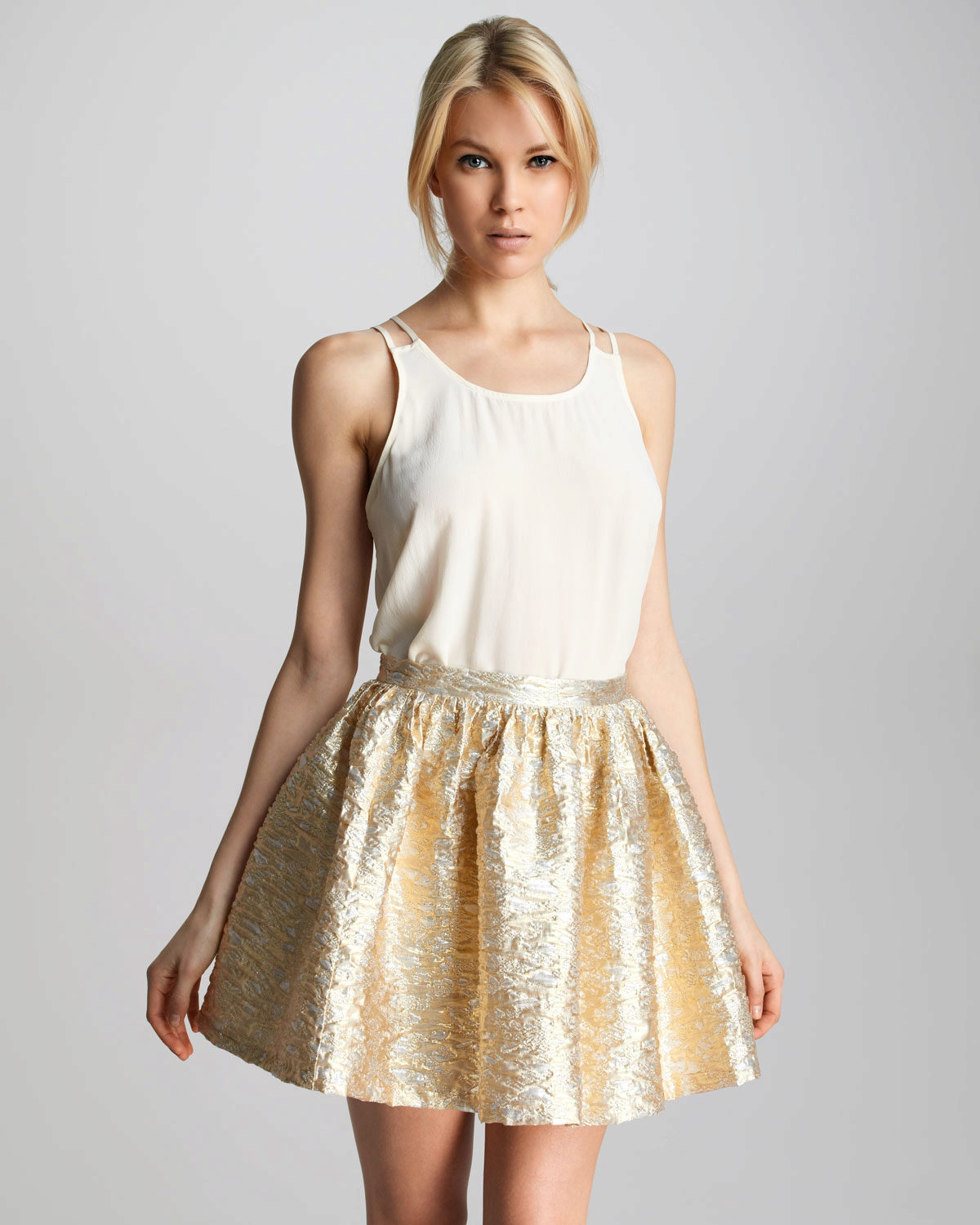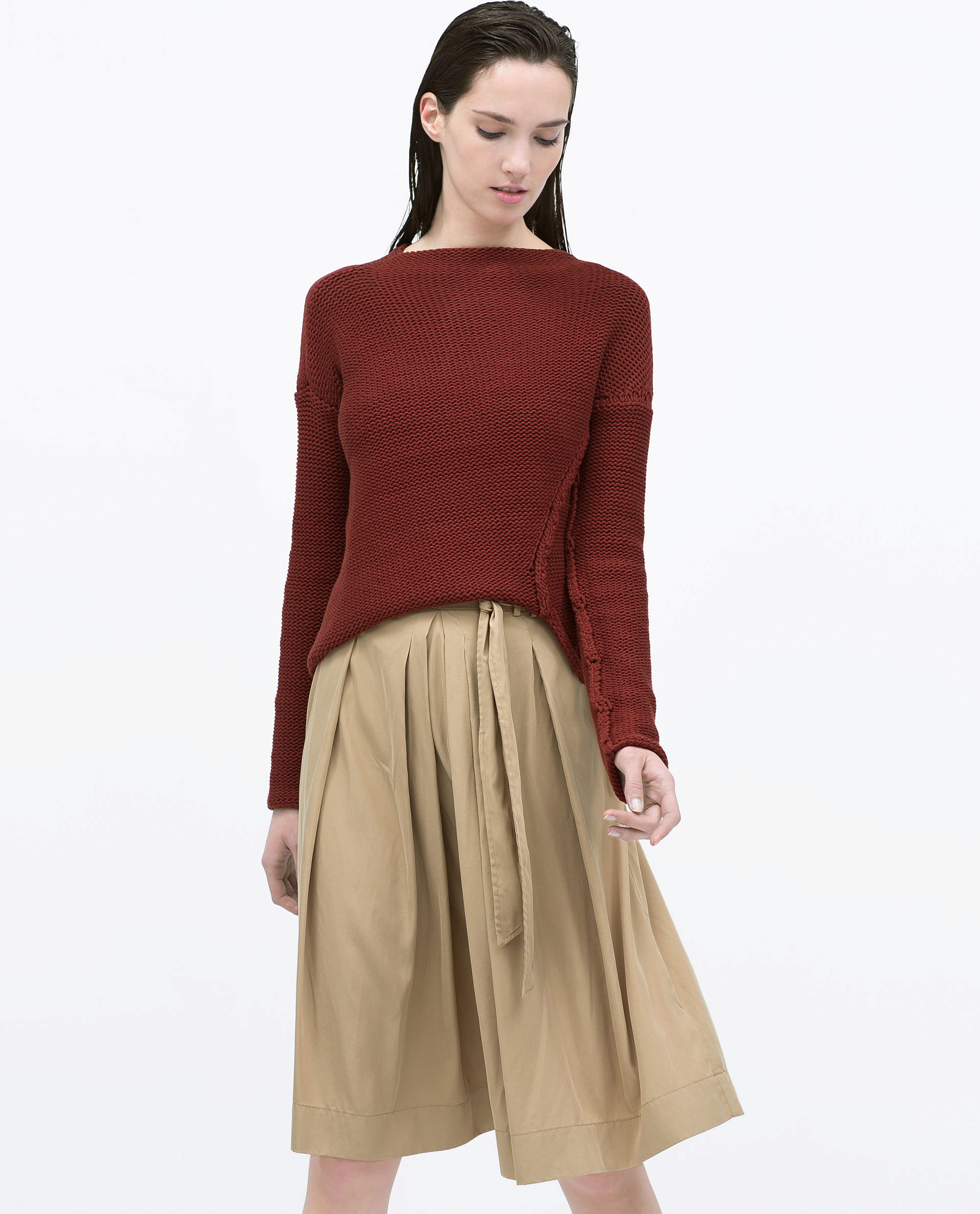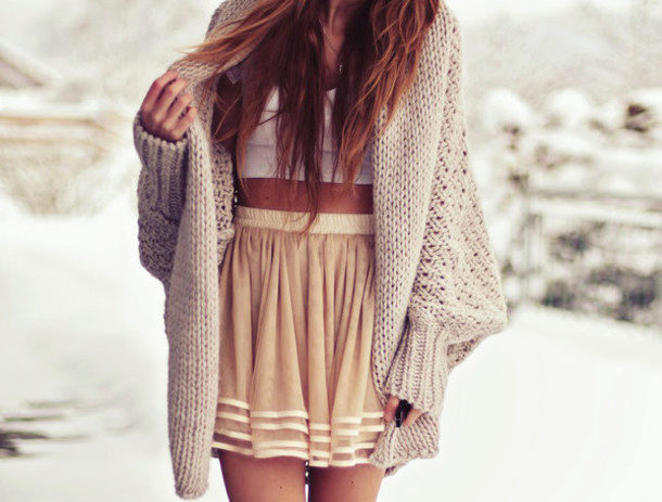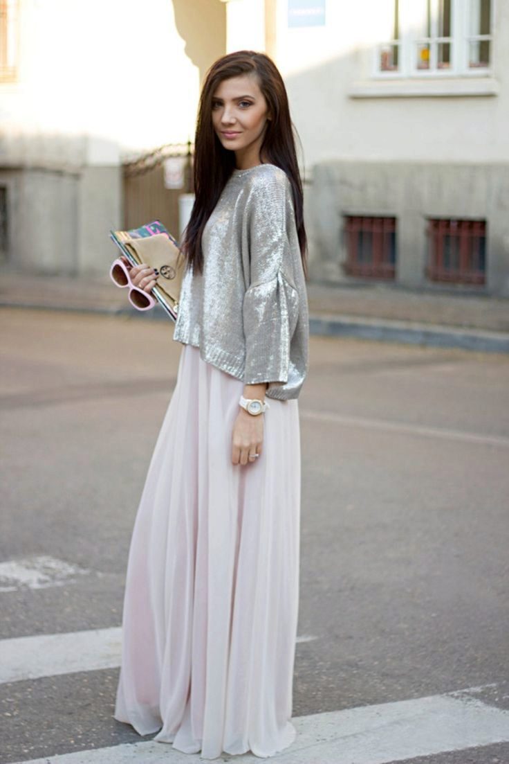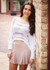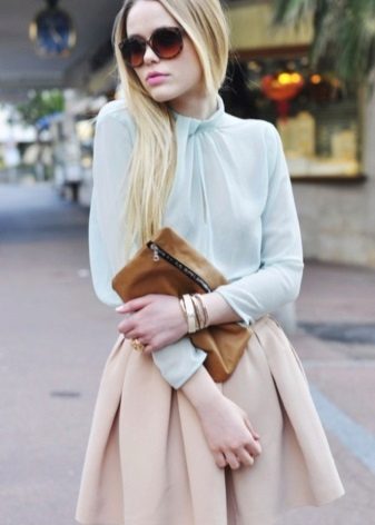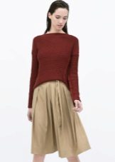 Such beige skirts attract with their pomp and femininity. Most often they are worn with semi-transparent blouses tucked in. A successful companion to the skirt-sun will be a cropped top. Such a voluminous skirt looks good with a jumper or sweatshirt.