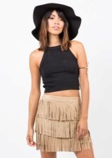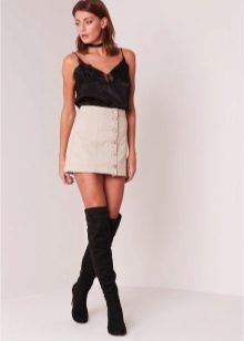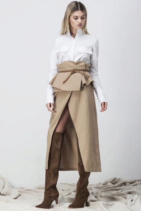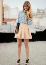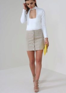 These skirts are distinguished by a combination of neutral color and bold style. They are worn with a T-shirt, blouse or different tops. Especially popular now are monochrome ensembles with a short beige skirt that look very sexy.
