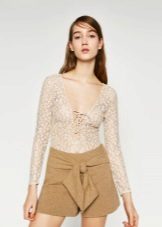 For a casual look, a beige skirt is often combined with a printed top. The leader among the prints on the tops, blouses and jackets to the skirt beige is a leopard pattern. No less popular stripes and cell.