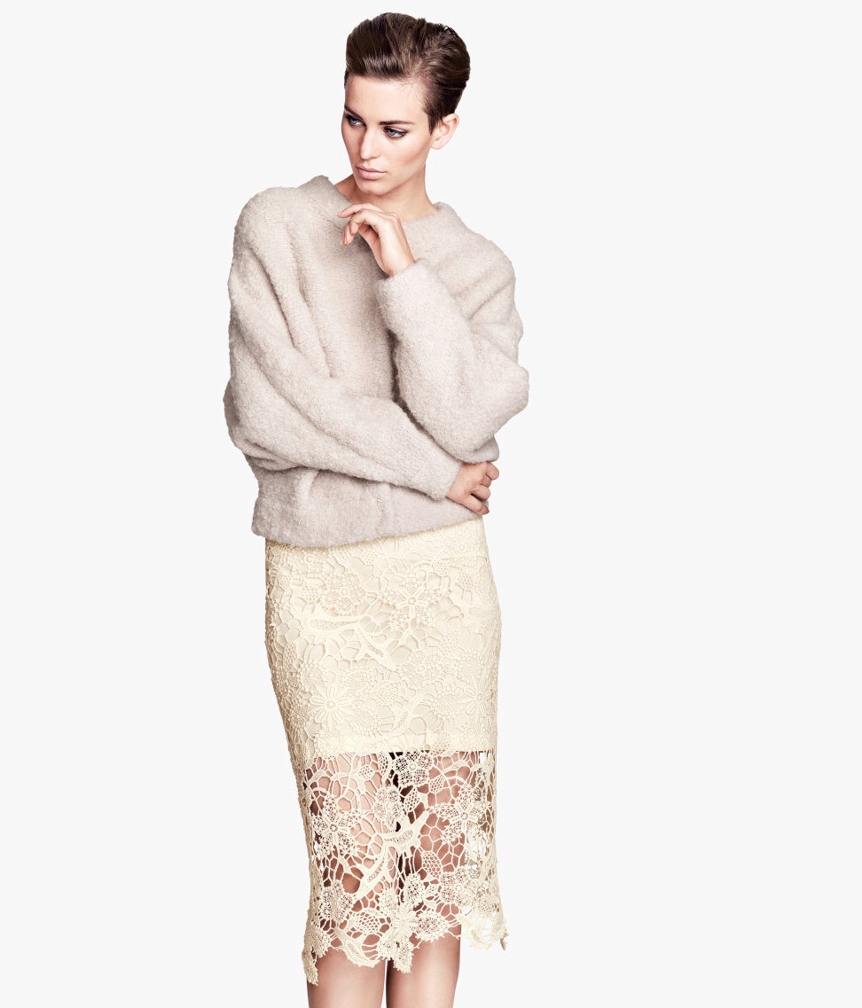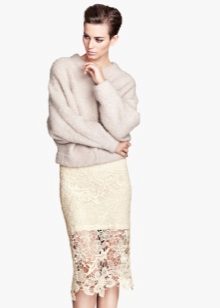 Beige skirts made of lace material are delicate and elegant. Lace in such skirts can be represented only by inserts, but models that are completely sewn from lace fabric are very popular. Their lining can be slightly higher than the hem of the skirt, so that this skirt looks very seductive.