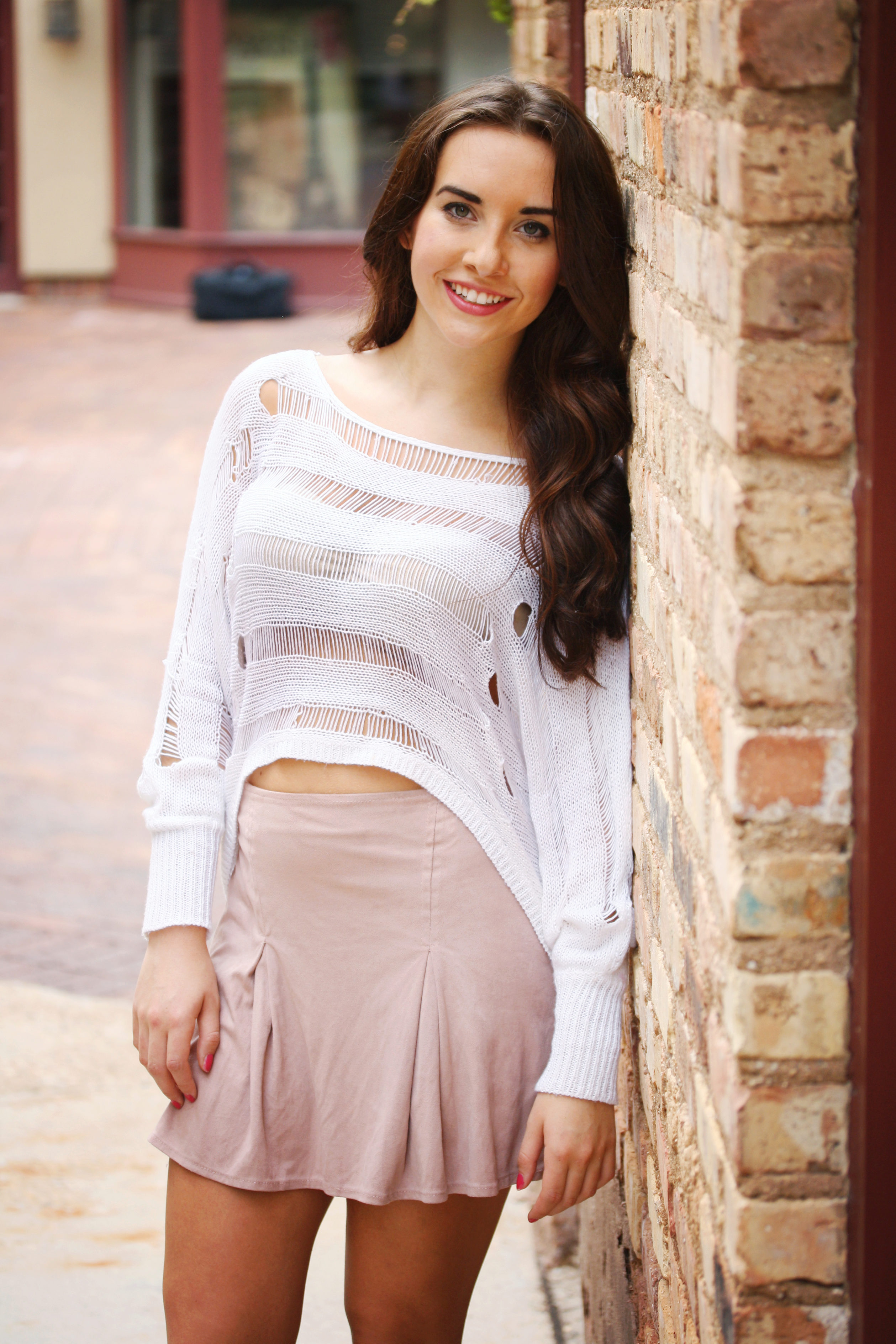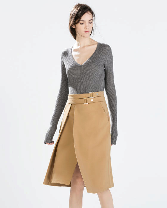 Also, beige and white combination is suitable for creating casual attire. Here the beige skirt can be worn with white turtlenecks and t-shirts.