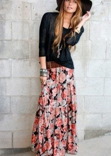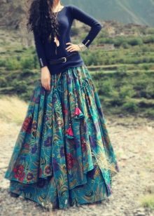 - Skirts-boho tiered type. Layers are superimposed on each other, with each layer hanging over the previous one. The length of these segments varies depending on the style.