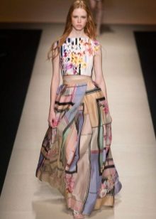 For such skirts suitable natural fabrics. The material is selected depending on the season. These are light, transparent, airy matters, colored, monophonic, bright, even motley. In the summer - chiffon, silk, flax, cotton, denim, they are not hot.