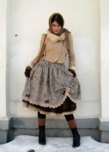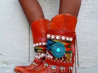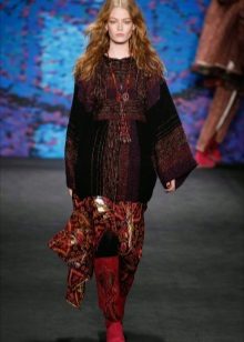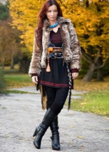 - Combined with vests, embroidered in the Indian style, or with a leather vest with fur, with knitted oblique capes, decorated with beads, buttons, lace fringe.