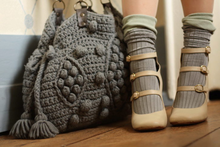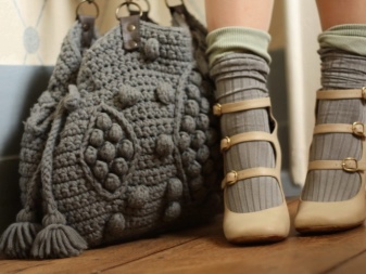 To complement the image of a large bag, hair, decorated with ribbons, hairpins with beautiful big flowers. Showiness will add a hat and an exquisitely knitted scarf.
