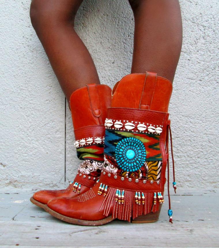 Cowboy boots, low-heeled ankle boots and denim shoes are also often chosen.