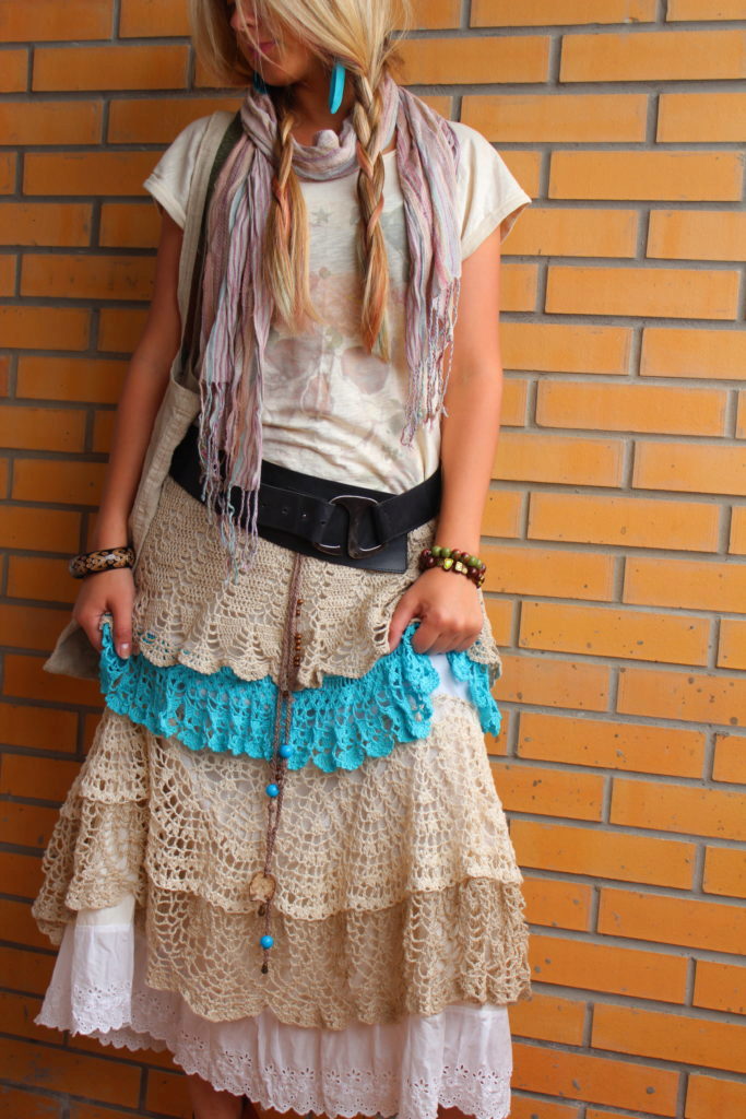 The boho skirt is distinguished by stone trimming, beautiful decor in the form of lace, openwork ruffles, embroidery, fringe, and lacing.