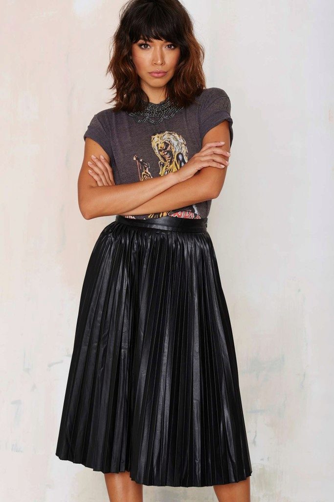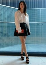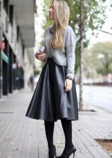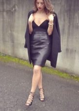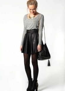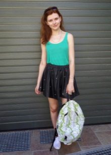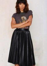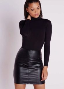 The top to a black leather skirt can be both monophonic and with unusual prints. These skirts can be worn with blouses, long-sleeves, T-shirts, tops or shirts.