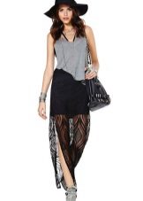 Such black skirts are often sewn from knitwear and satin. In them, the girl gets a special charm. One of the trends is the maxi skirts, whose waistline is too high. With them you can create a light and elegant image.
