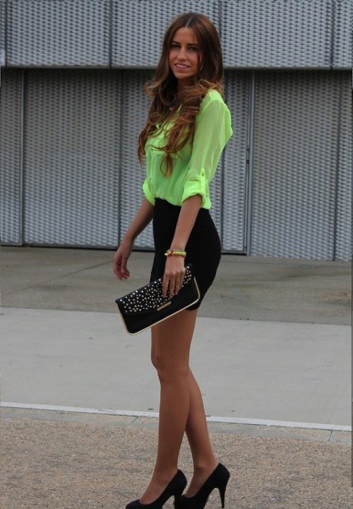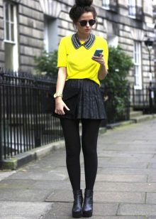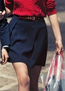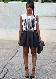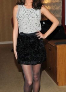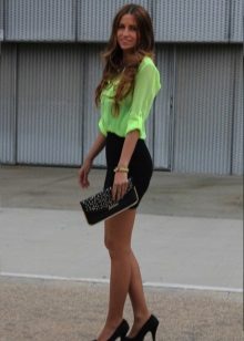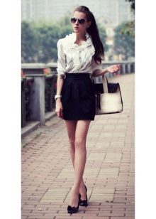Such skirts are worn with seductive blouses and bright tops. Wearing a similar skirt with a strict blouse and classic pumps, you will get an elegant look with a hint of seduction. Also, a short skirt of black color is used in a sporty style, if you add it with a T-shirt and sneakers.