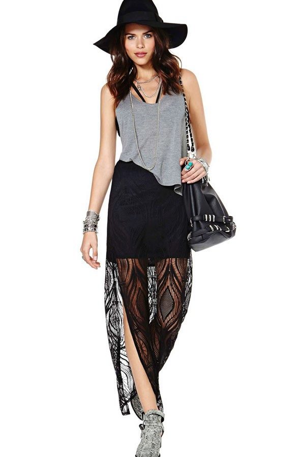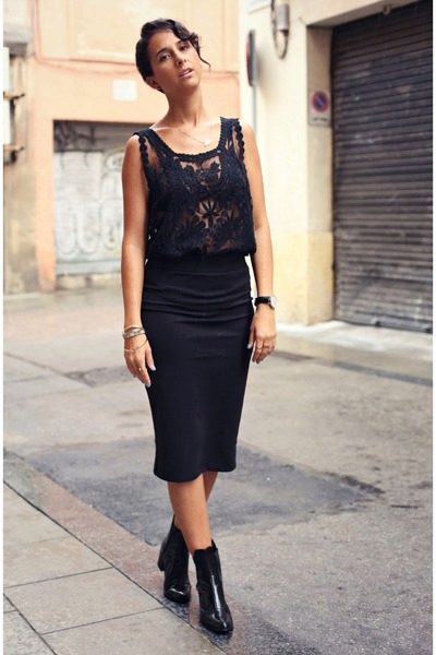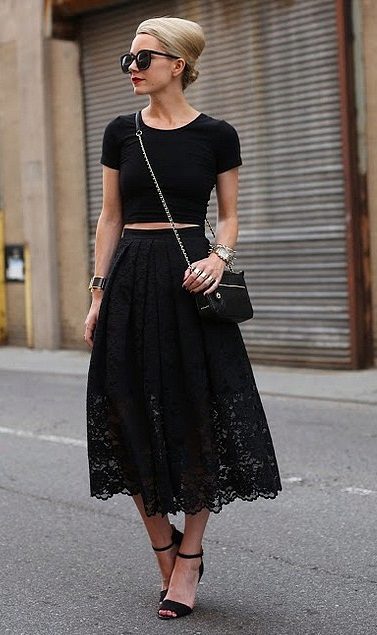 Skirts of lace, presented in black, are now included in the list of trendy things. They are presented in different shapes and lengths.