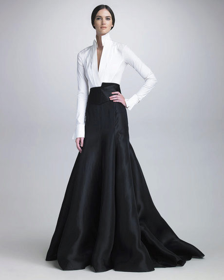 This color combination attracts the eye and looks amazing due to its contrast. For example, in a black skirt straight cut, complemented by a bright red blouse and black shoes, a woman looks expressive and graceful.