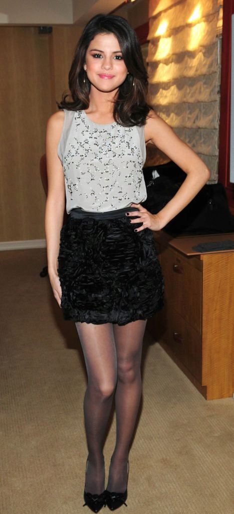 In black skirts above the knee length, the girl looks sexy and spectacular.