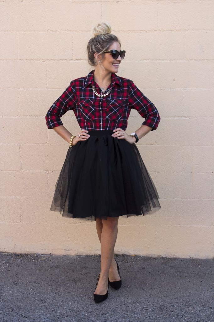 For a casual outfit with a black pencil skirt, you can wear plaid shirts, printed sweaters, turtlenecks or T-shirts.