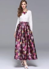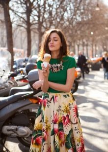 This style of a floral print skirt is one of the most popular in recent seasons. Many girls have fallen in love with this model for its property to imperceptibly adjust the figure, hiding under the volume of their imperfections.
