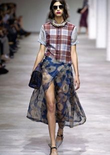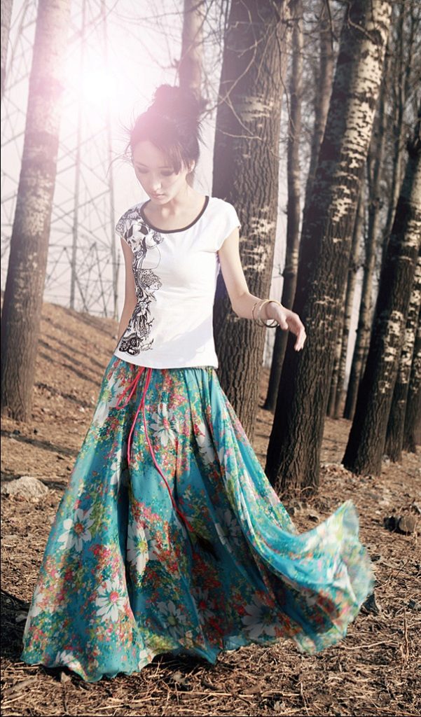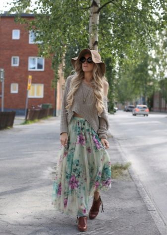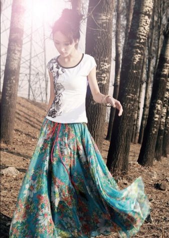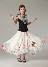 Because of the large amount of fabric, the skirt creates a light flying look, in which a floral print can be a bright accent.