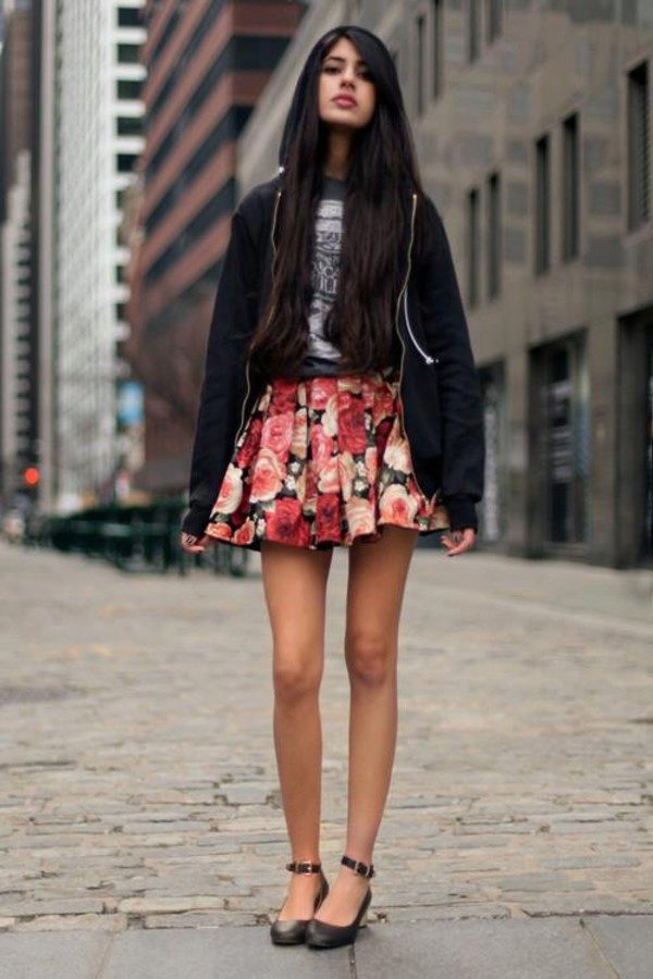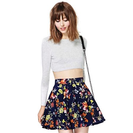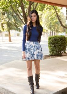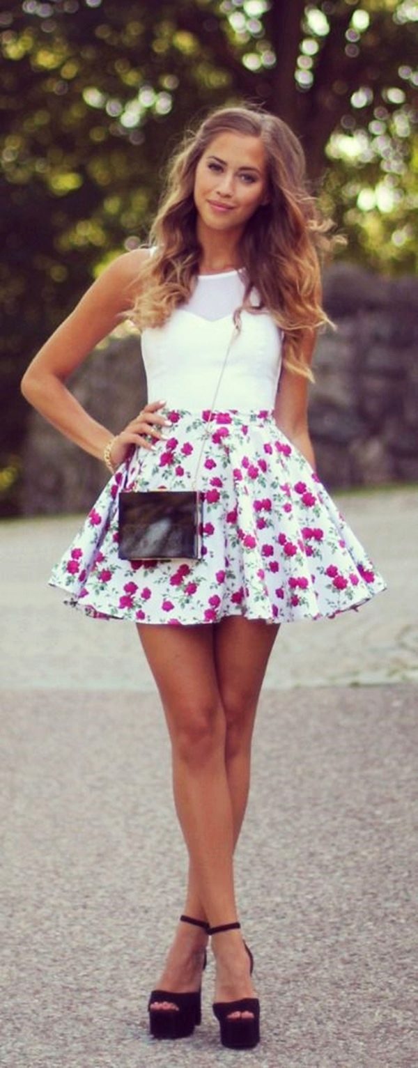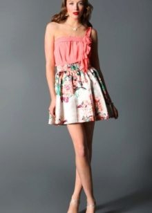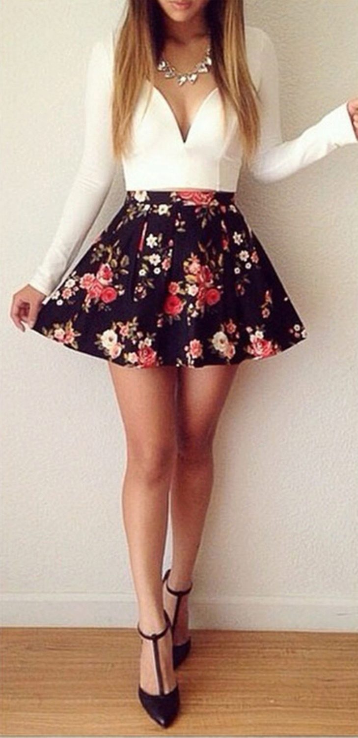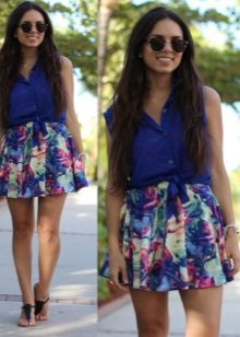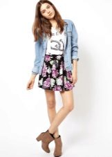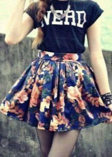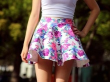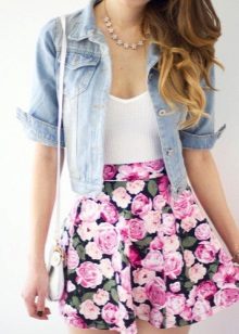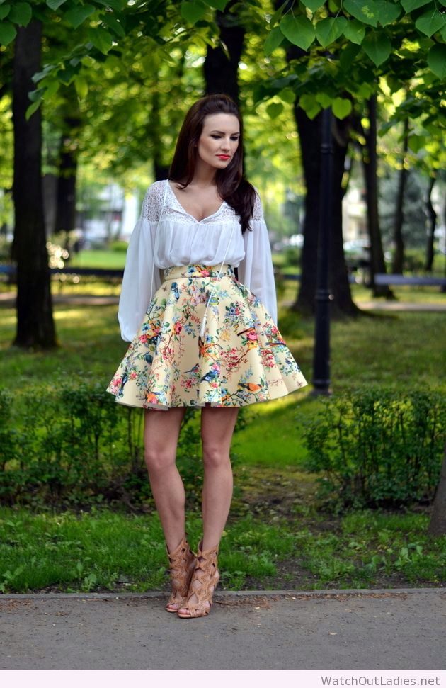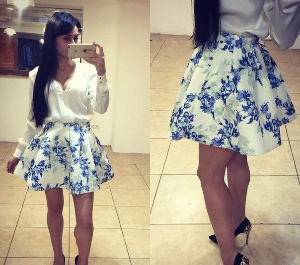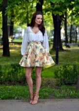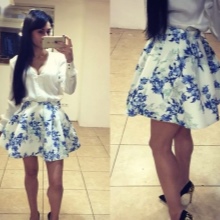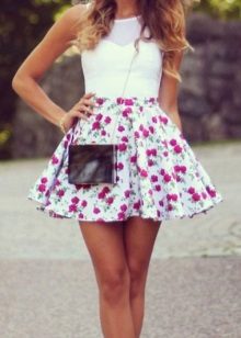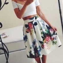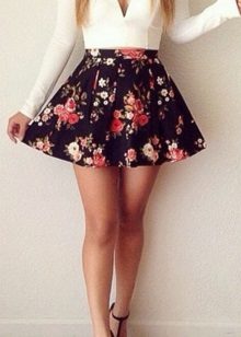 Beautiful girls are always happy to demonstrate their figure, and the best helper in this is a miniskirt. In its floral version, it will add a special charm and sensuality. A good combination with such a model would be a white top, the volume of which depends on the skirt's pomp - if the skirt is fluffy, then the top will look like it, or vice versa.
