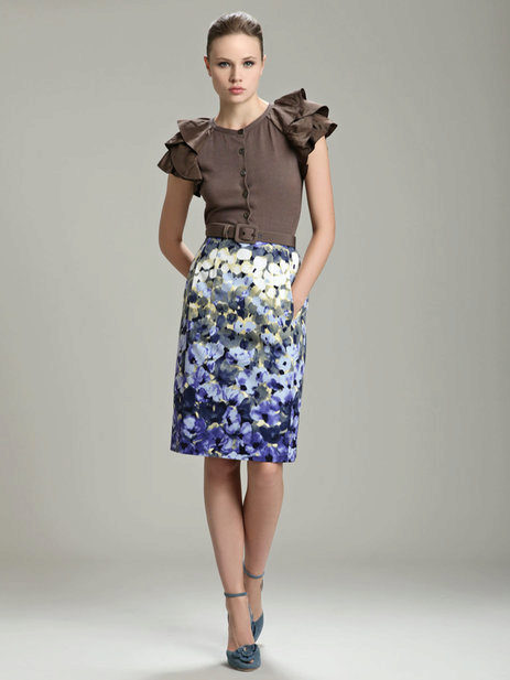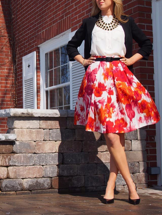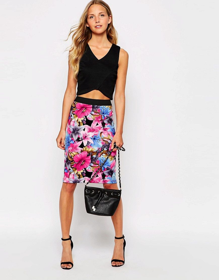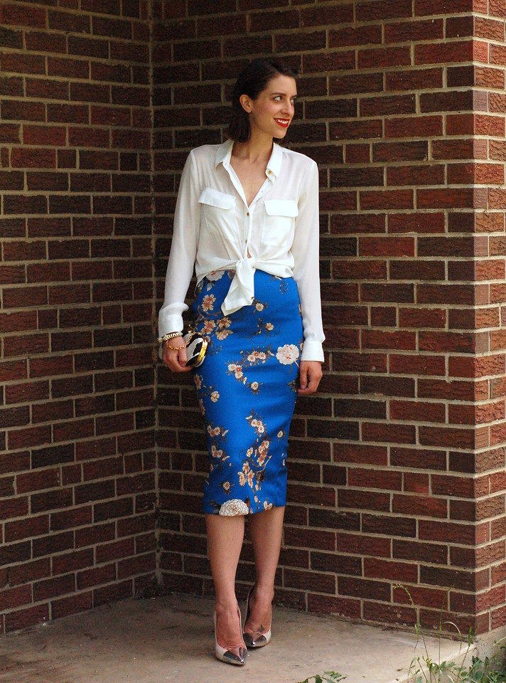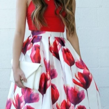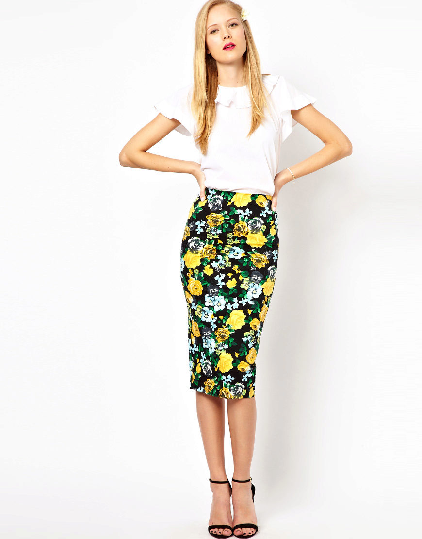 A floral pencil skirt with the right base color will be perfect in the office, and a tulip skirt is suitable for going to the movies or a date.