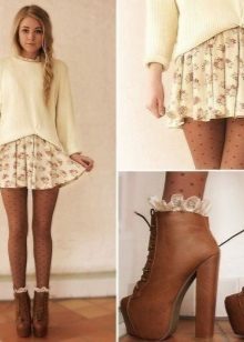 For visiting social events from shoes, this set of clothes is ideal for classic boats of the dominant color, and for everyday life sandals or sandals without heels. Also, every day with a fluffy floral skirt will look great denim shirt.