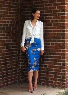 With such a length, the main thing is not to make a mistake with the choice of model, since there is a risk of visually shortening the legs.The most popular knee-length skirt model is a pencil, which is representative of the office style. Black with a floral print, it will be appropriate in the summer, and in combination with a light top will take a worthy place in the wardrobe of a business woman.