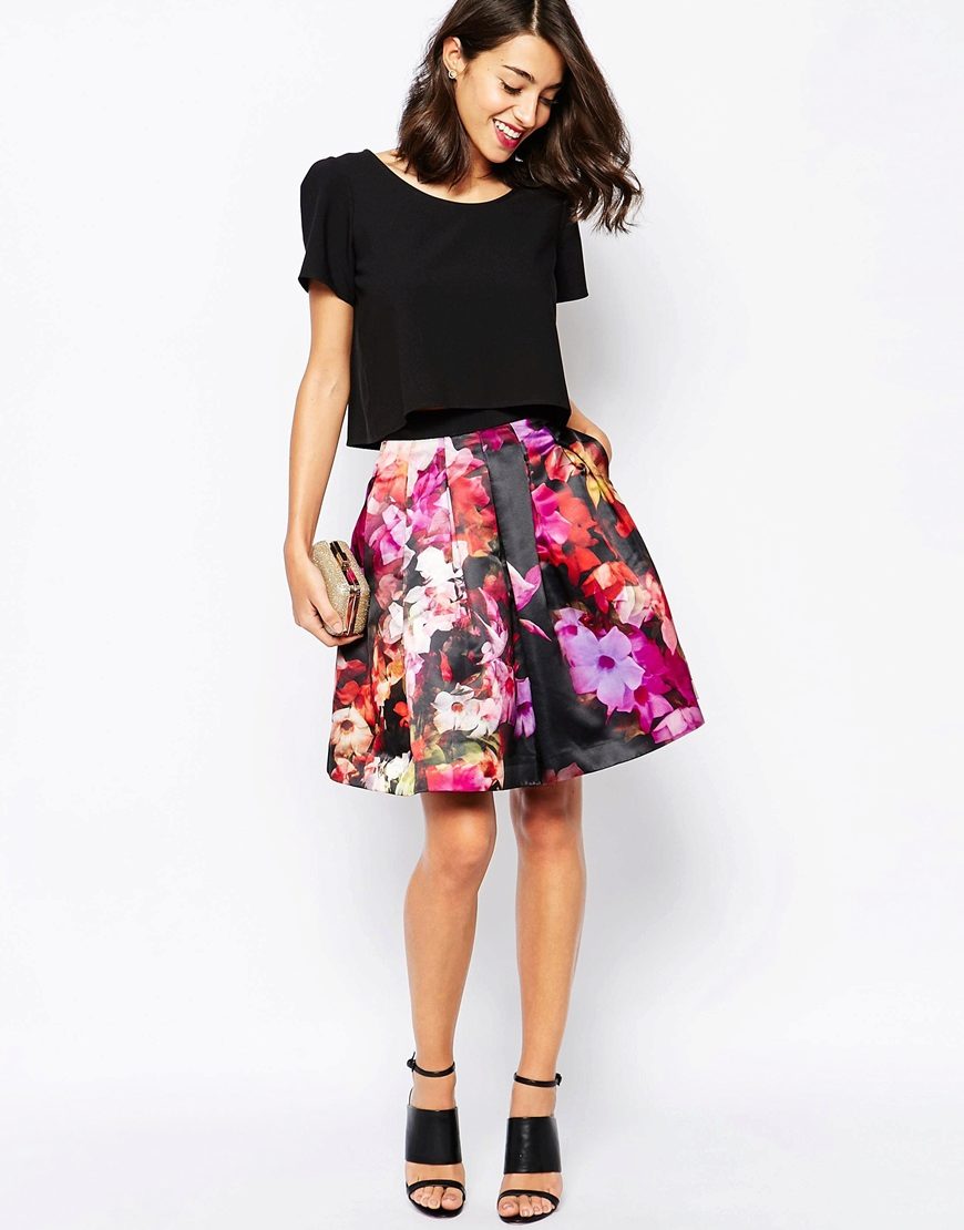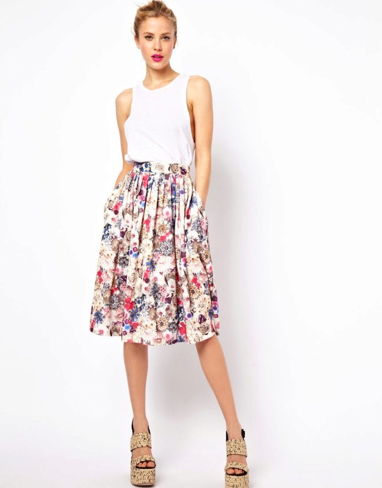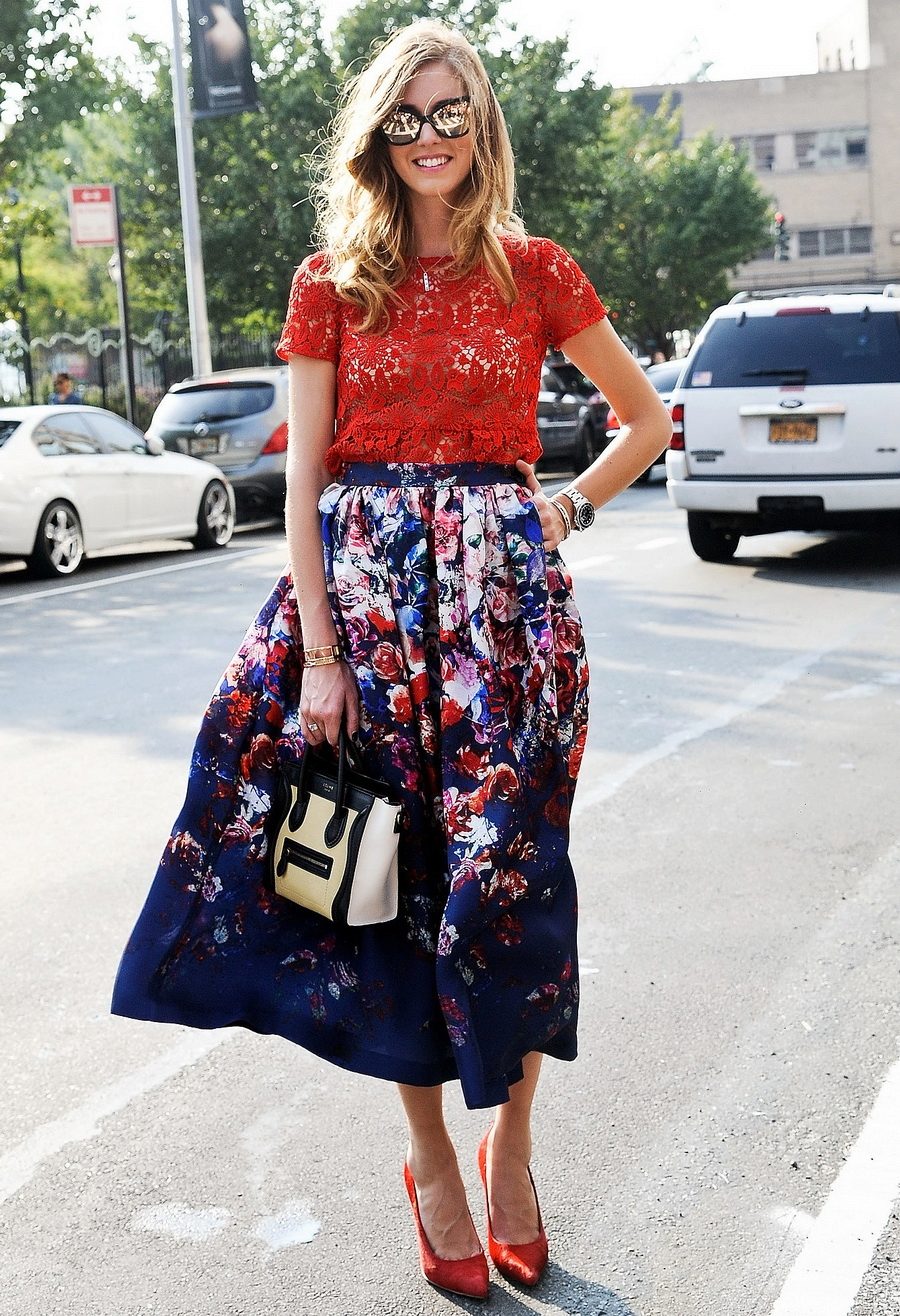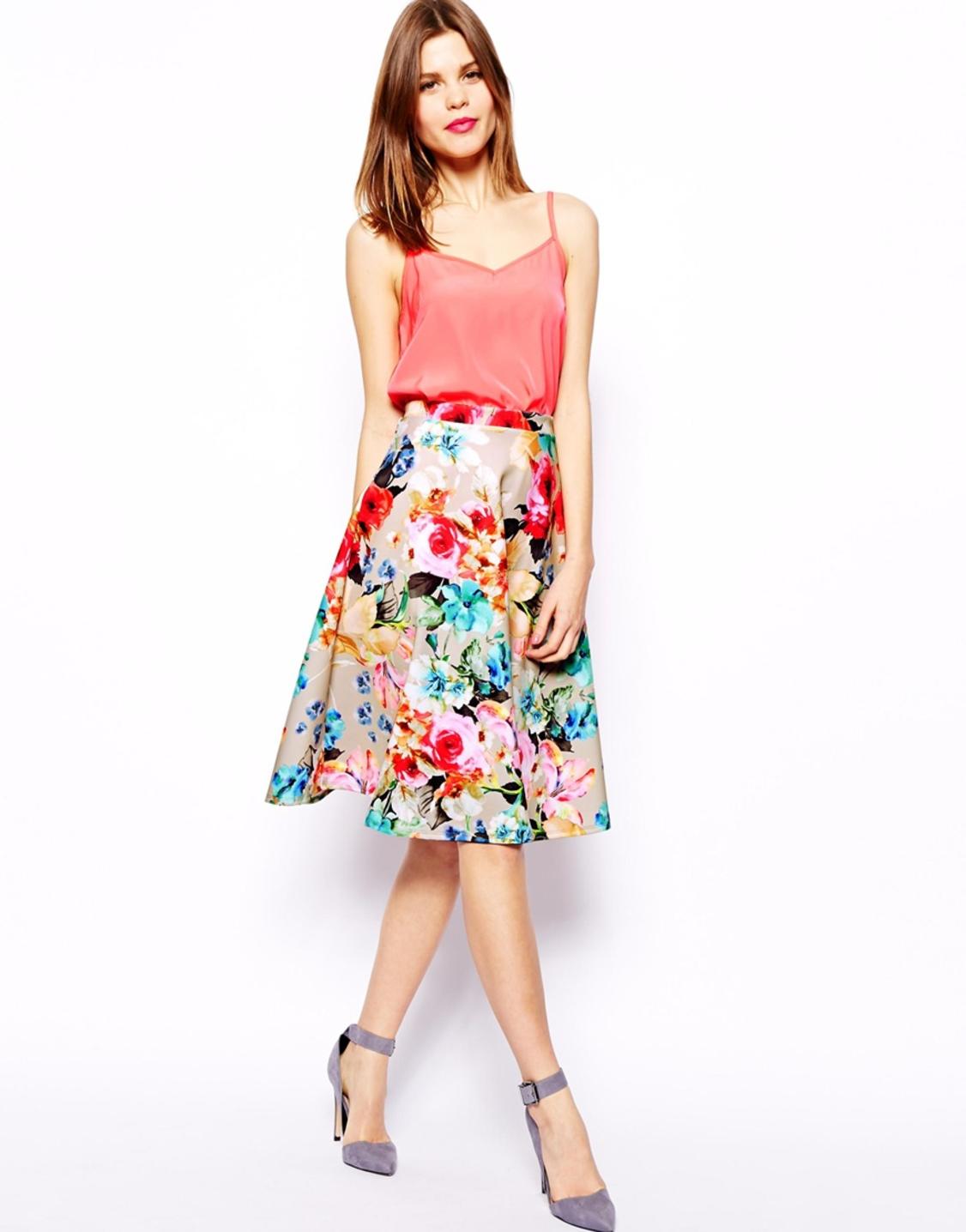 A skirt with a floral print is in the wardrobe of almost every woman of fashion, and for good reason. Its use in almost all styles makes flower patterns megapopular in the warm season.
