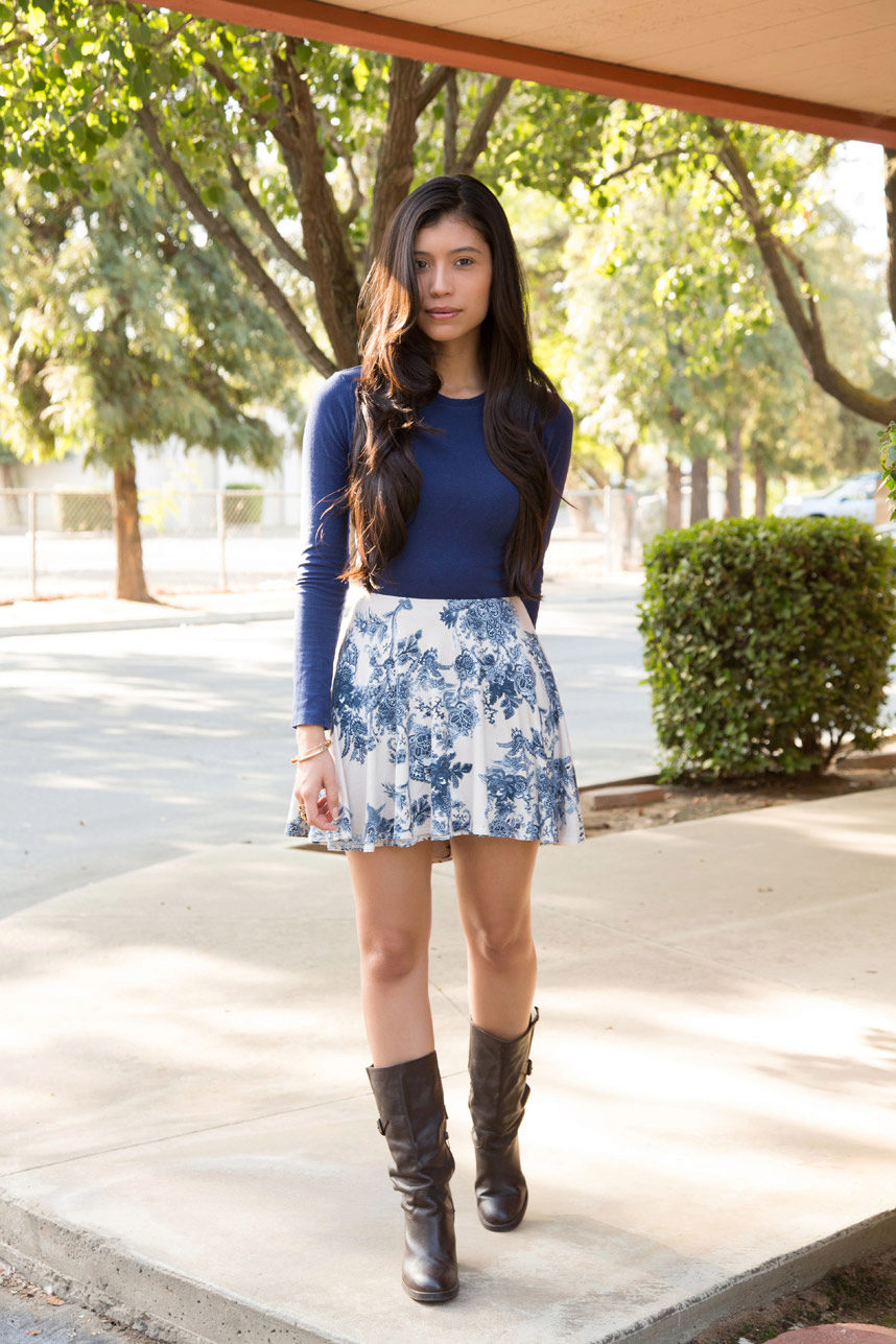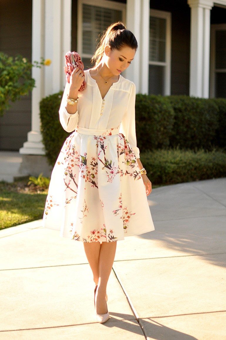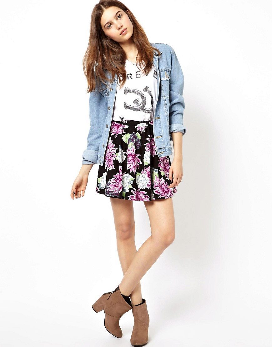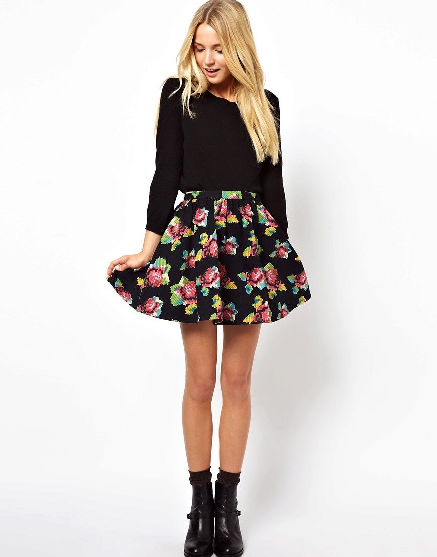 A skirt with a floral print is in the wardrobe of almost every woman of fashion, and for good reason. Its use in almost all styles makes flower patterns megapopular in the warm season.