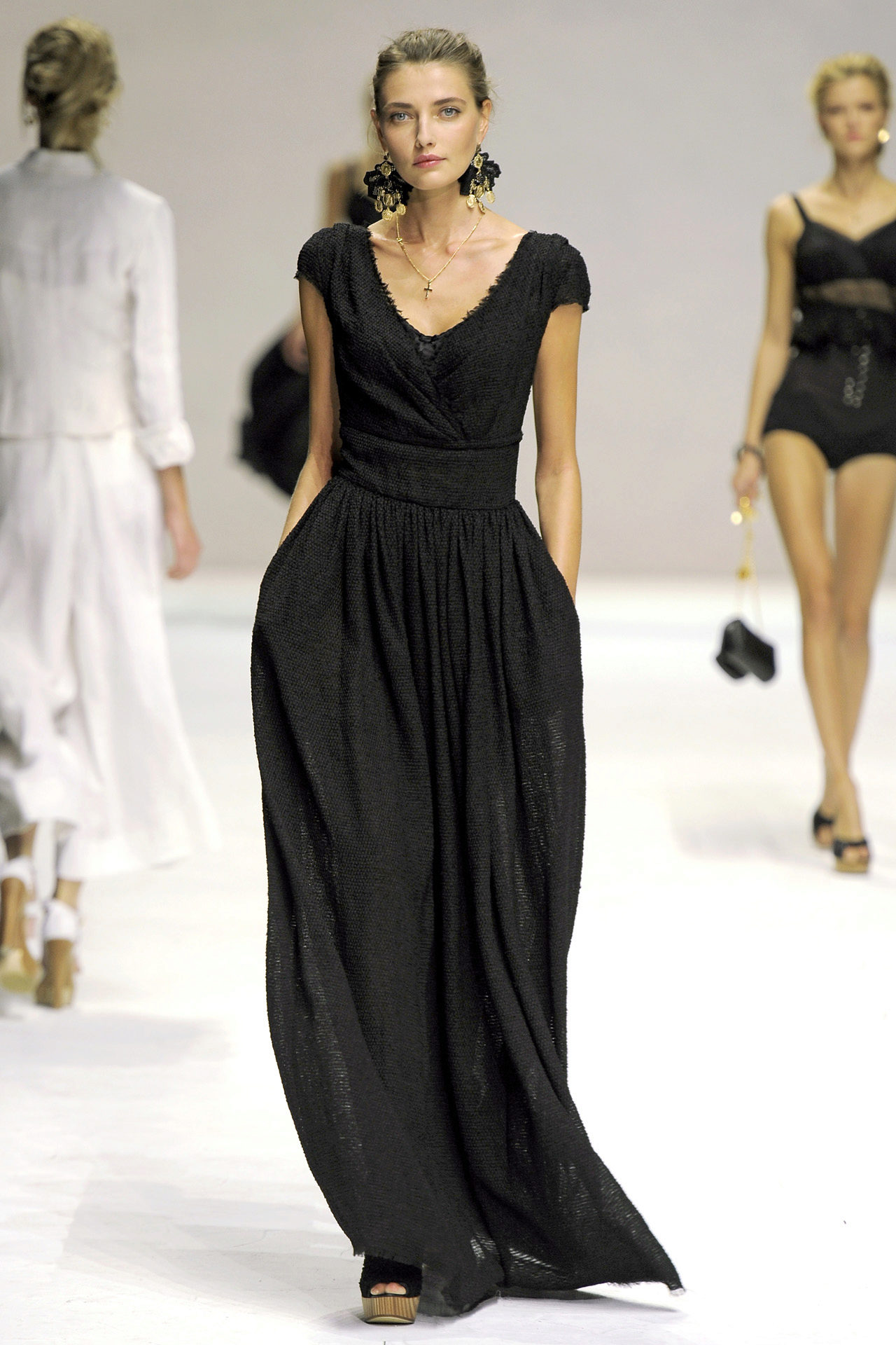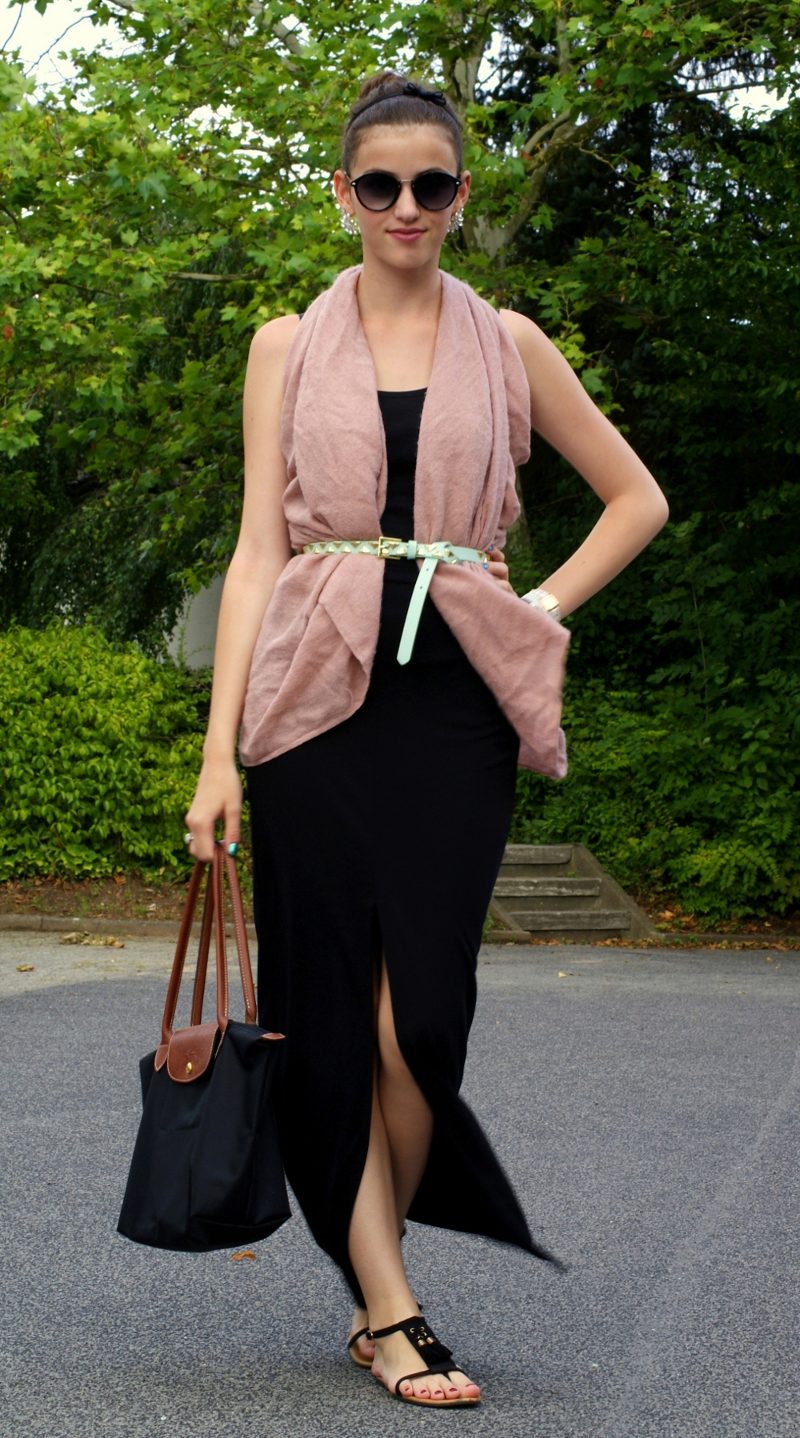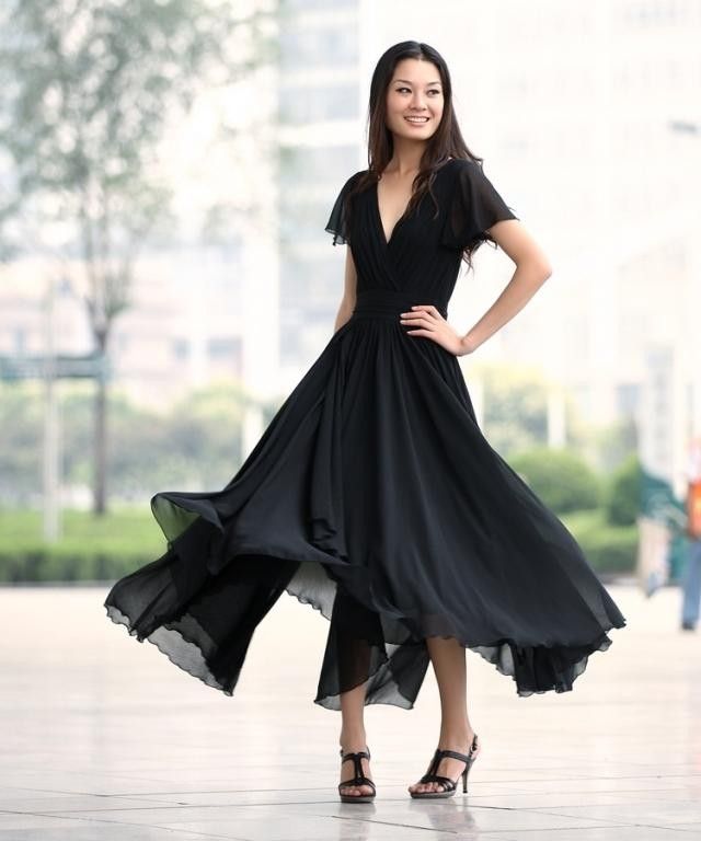In spring and summer, black or brown sandals can be worn to a long black skirt.