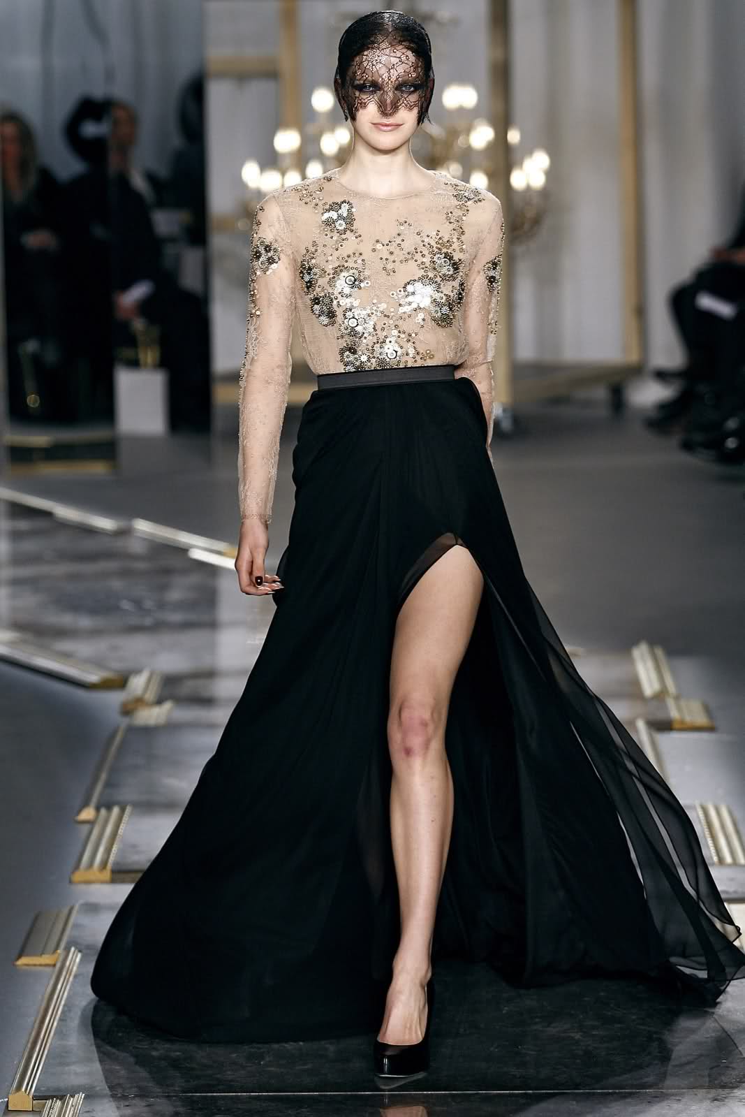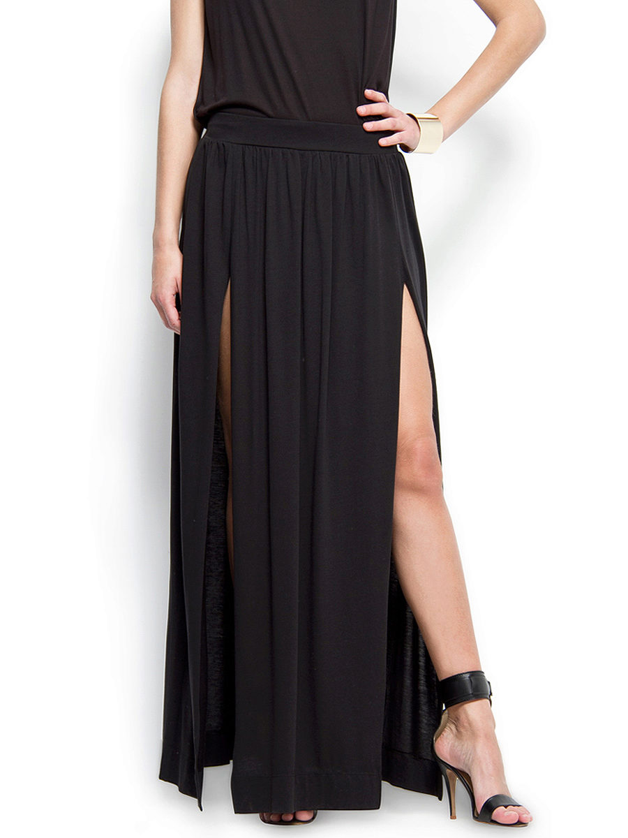 Skirt in the floor with a slit gives incredible sexuality. But it requires certain rules of socks, namely: a small neckline at the top of the wardrobe. Too deep neckline will give vulgarity. Ideal if the top is kept low.