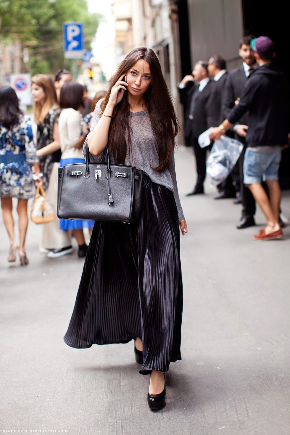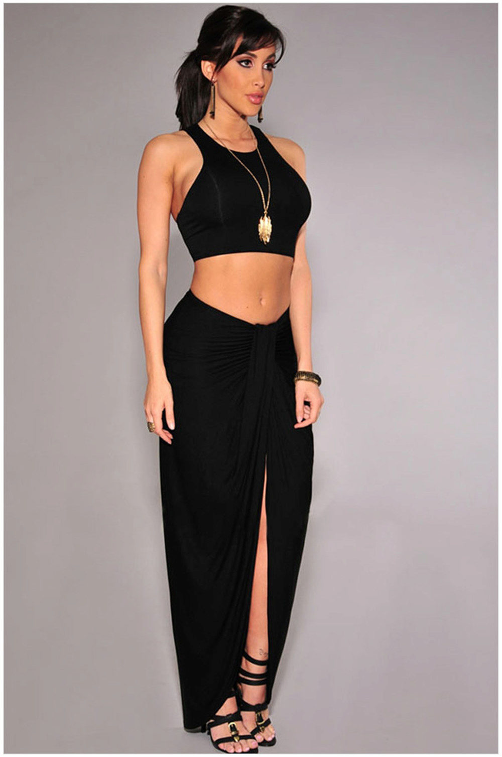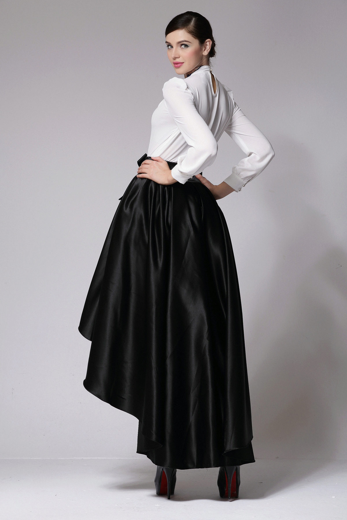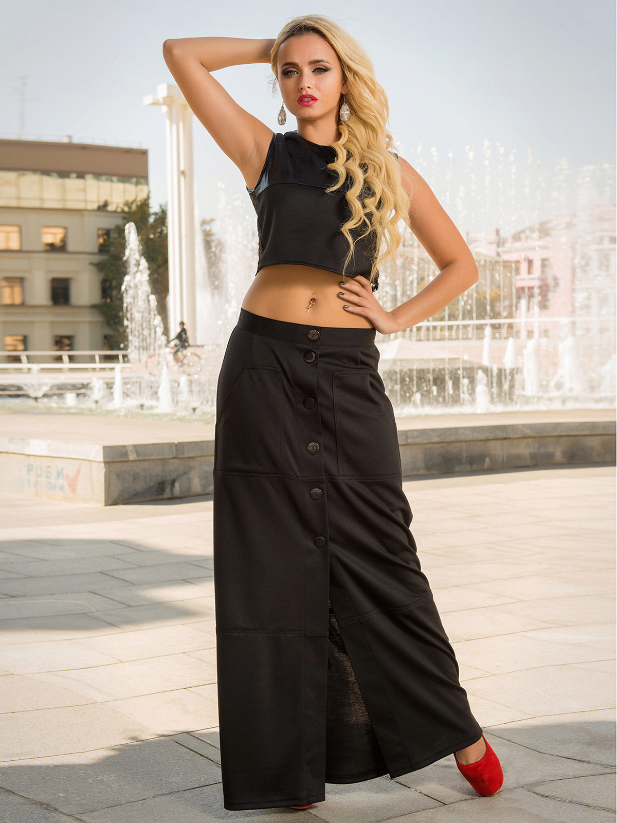 High heels and a long black skirt are the perfect combination for an evening out to the restaurant.