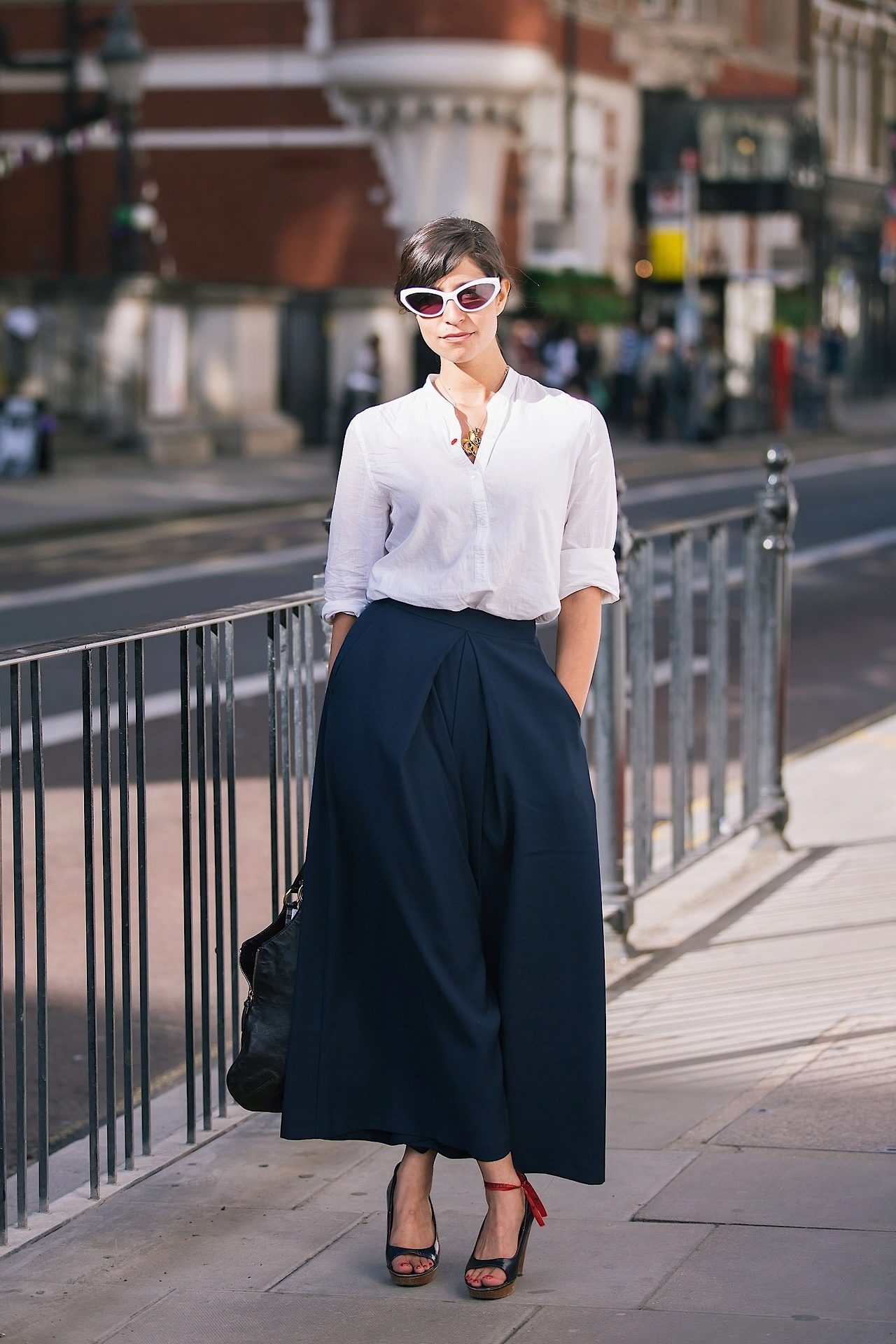 The combination of black and white is a well-established classic. A white top is perfect for a black skirt. It can be a jumper, cardigan, blouse. And if you want to move away from the severity, the bright top (cropped top or blouse) will add a mood for exploring the city.
