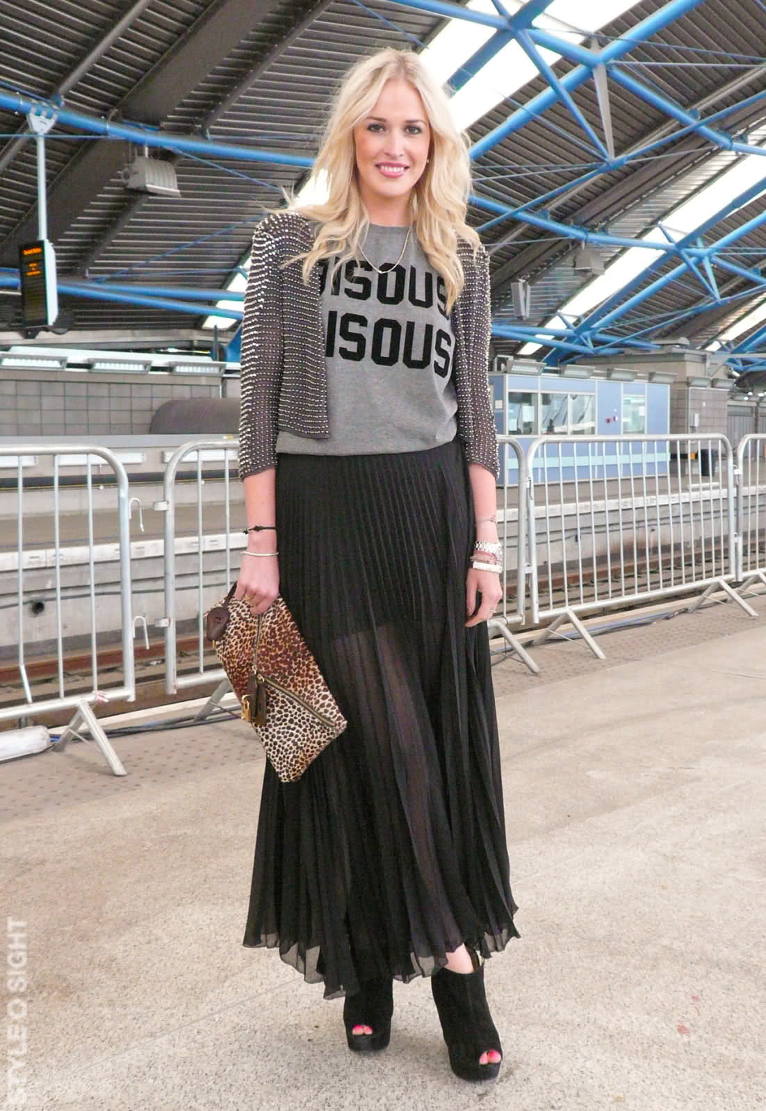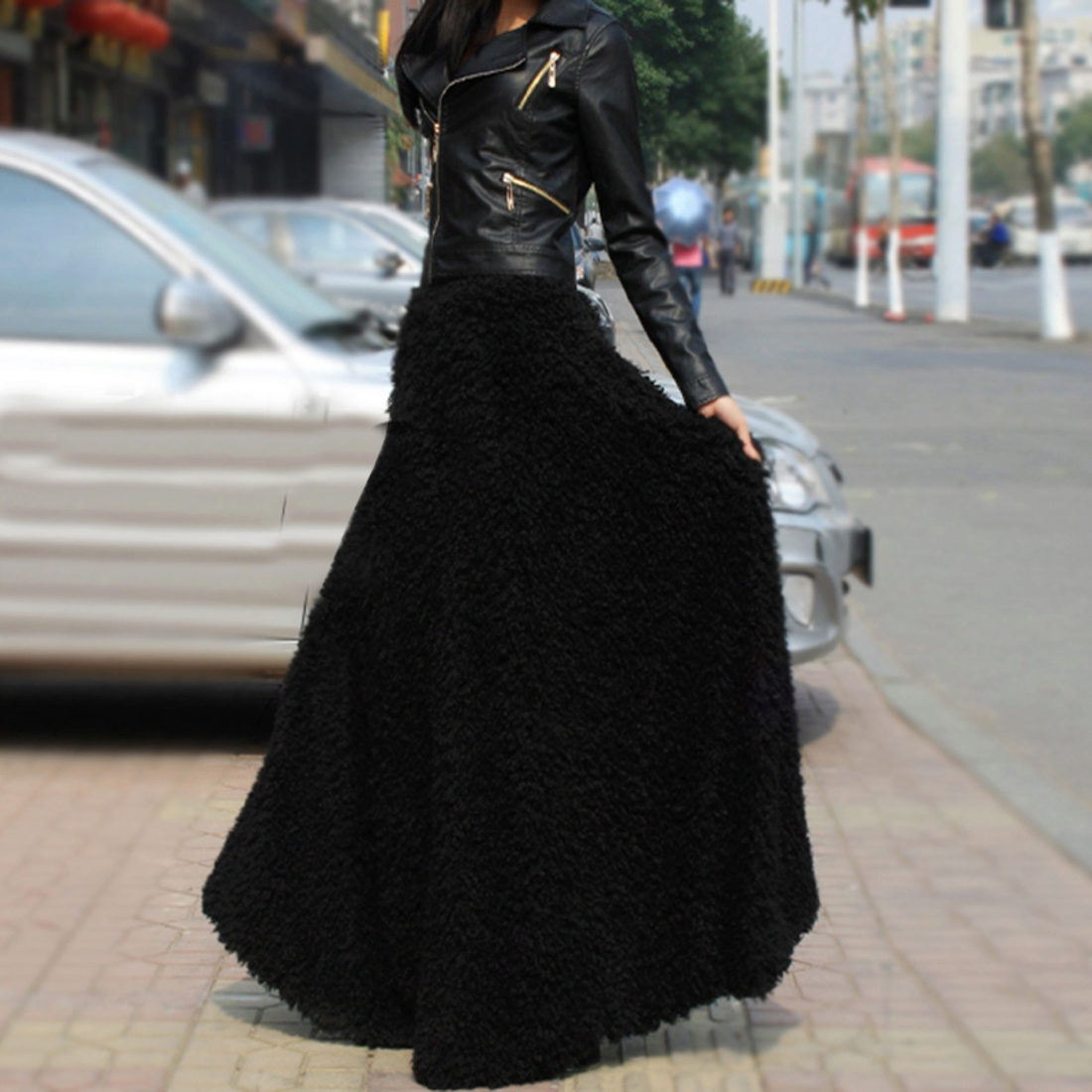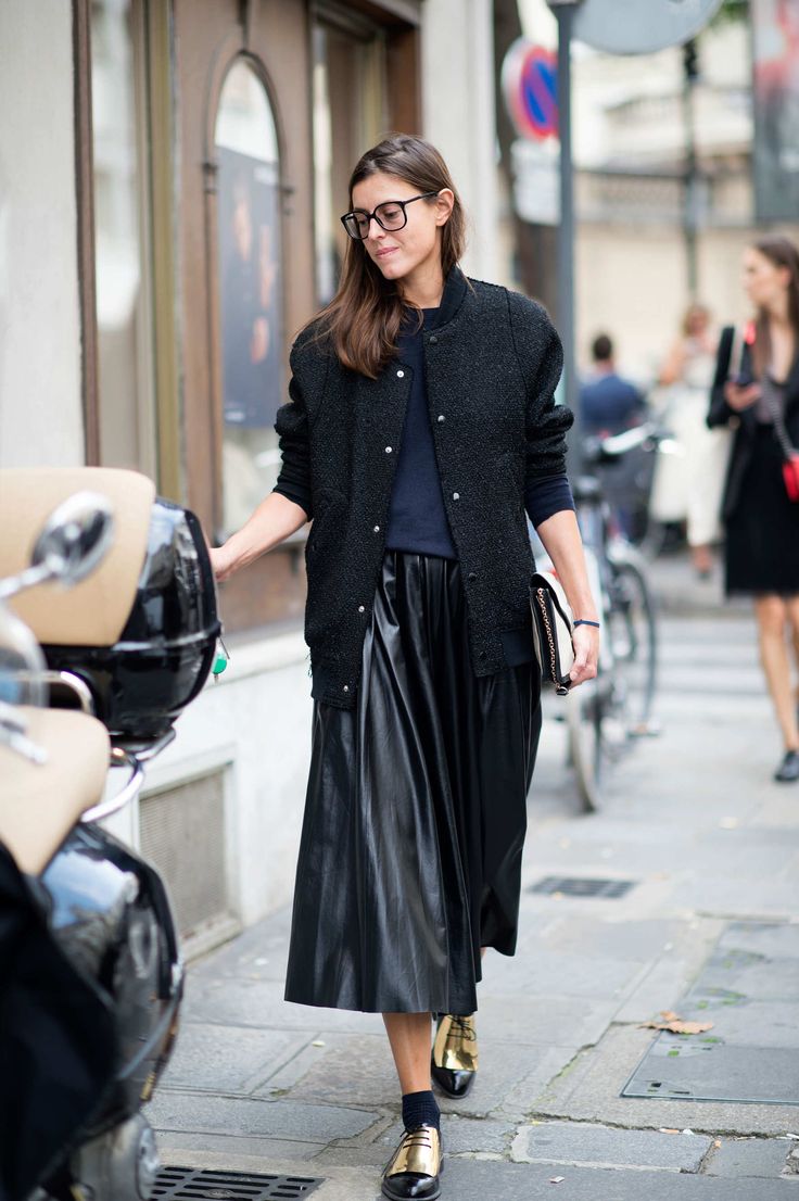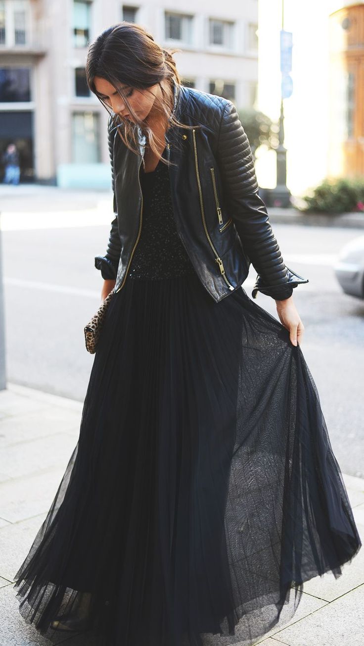Despite the fact that the basic element of the image is a long black skirt, his style is still dictated by shoes. If you wear golden sandals to a transparent chiffon skirt, you will create an image full of romanticism and sophistication. Fundamentally, everything changes with ankle boots on the platform and a leather jacket. This is some kind of aggression.