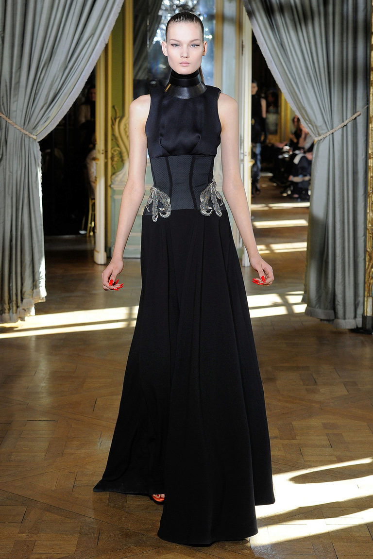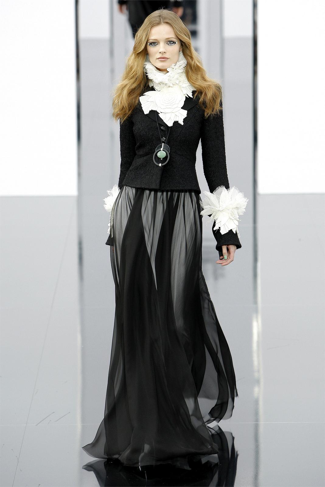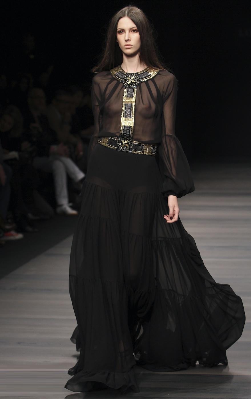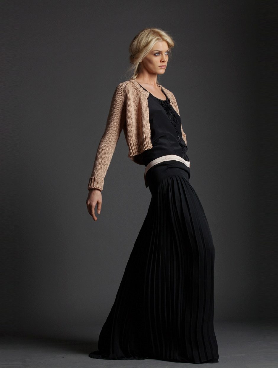 A long black skirt can give it a pleasing feel. The abundance of folds looks feminine and beautiful. But, choosing the top, keep the balance: to the fluffy skirt you should not wear the same volumetric top. Otherwise, your image will be just grotesque.