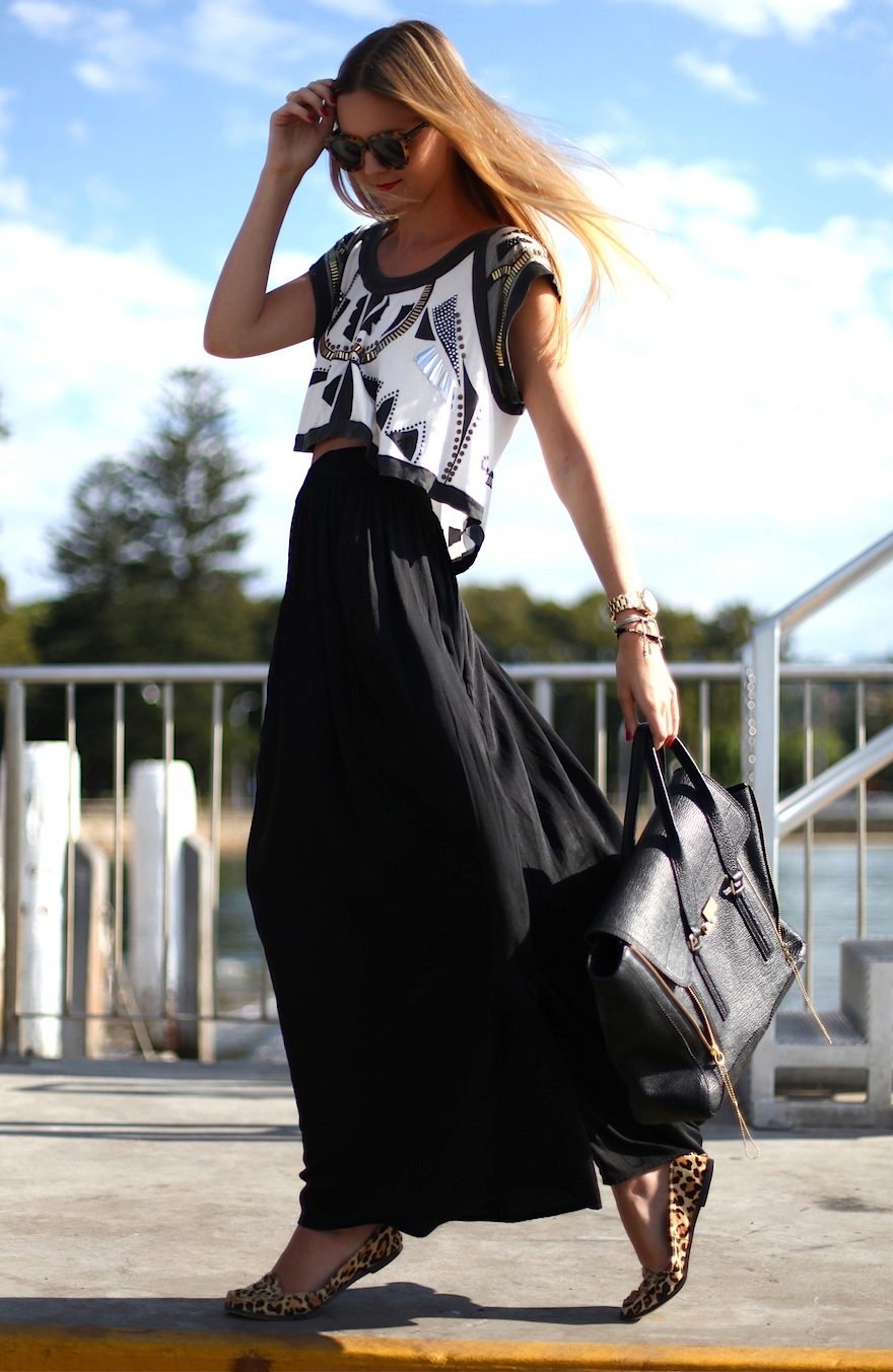 With the help of a long black skirt, but not baggy style, you can create a stylish casual look. Pick up to it a bright top (top or T-shirt) and massive jewelry (bracelets and earrings). But handbags should be miniature with thin straps.