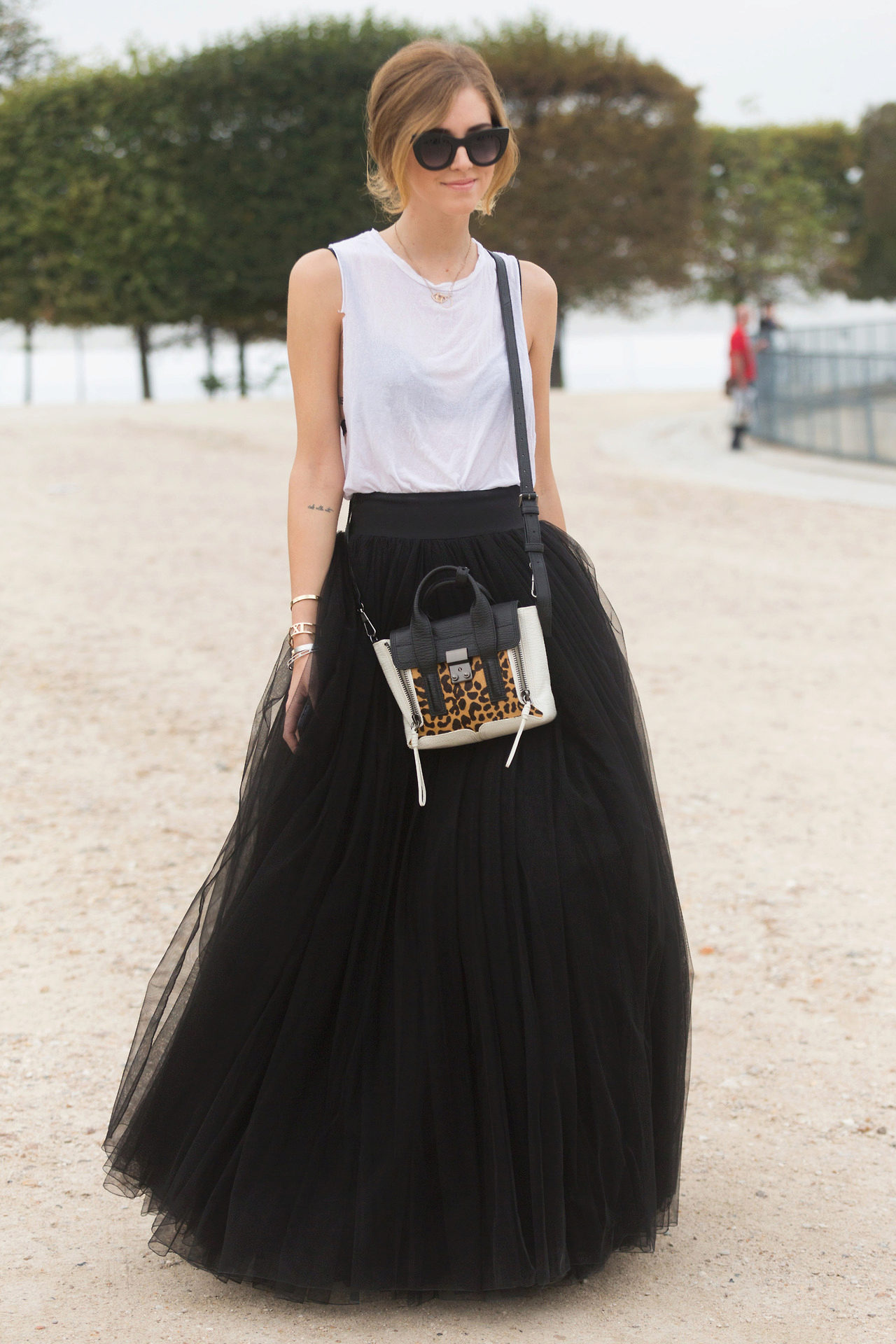 Fluffy skirt is equally good for everyday life (with sandals), and for the evening (with high heeled shoes).