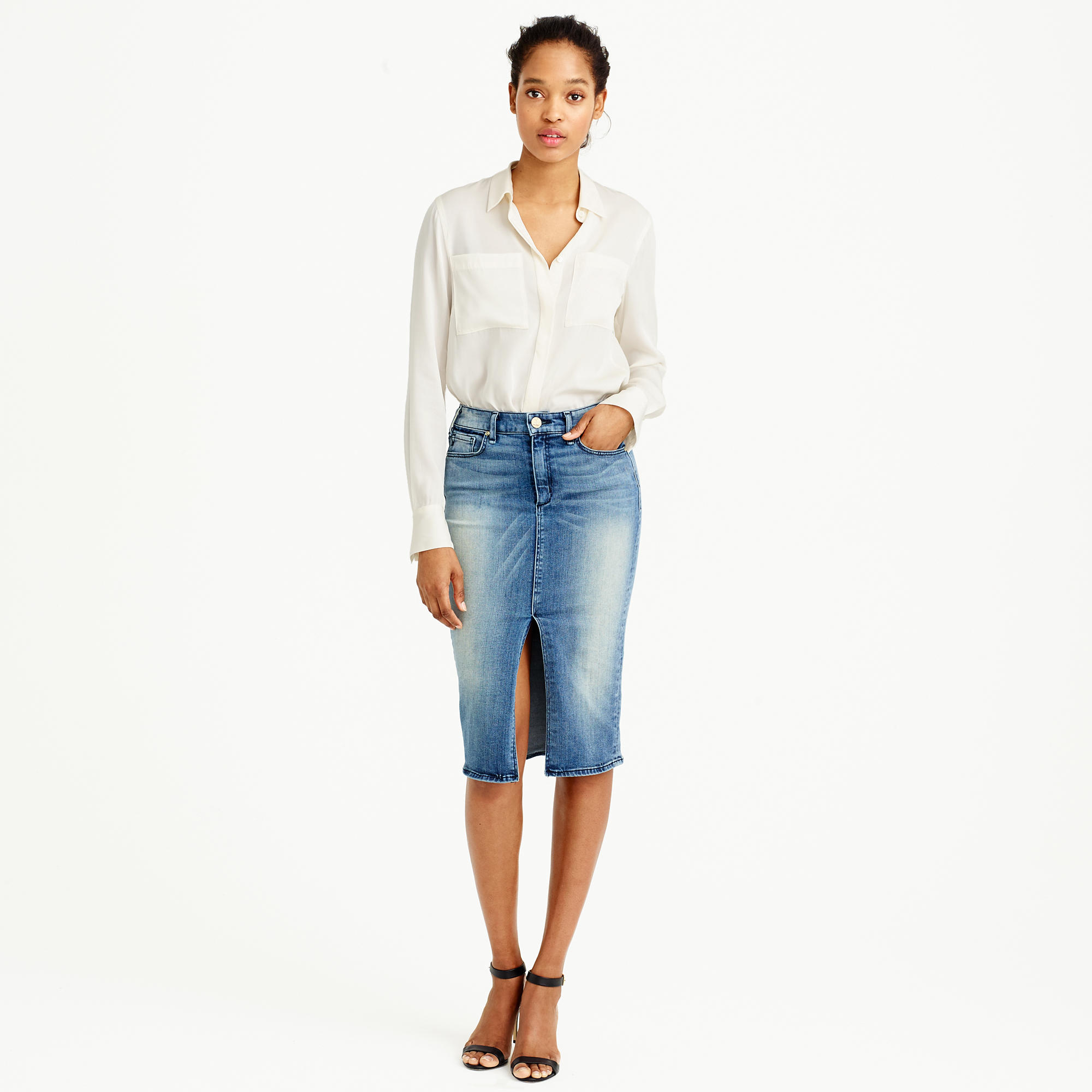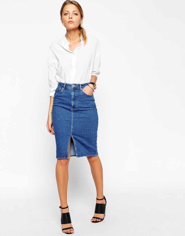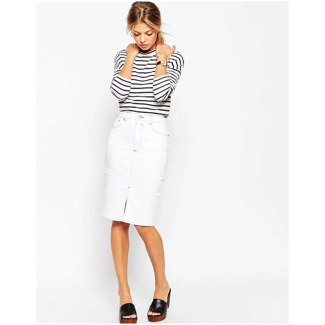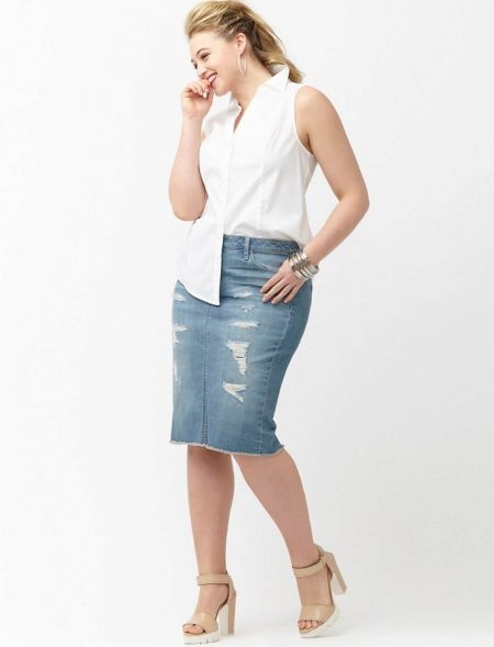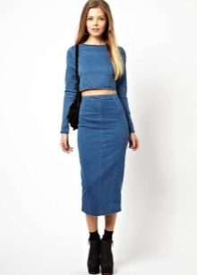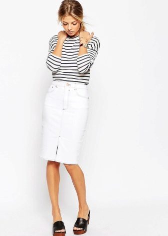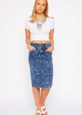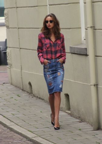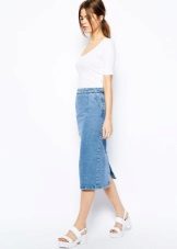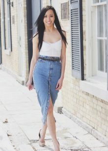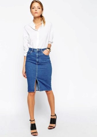 Pencil - a classic style skirt of medium length. Usually it is associated with a business style, but in the case of jeans it is rather casual. However, if you do not have a very strict dress code at work, then you can easily appear in the office in such a skirt.