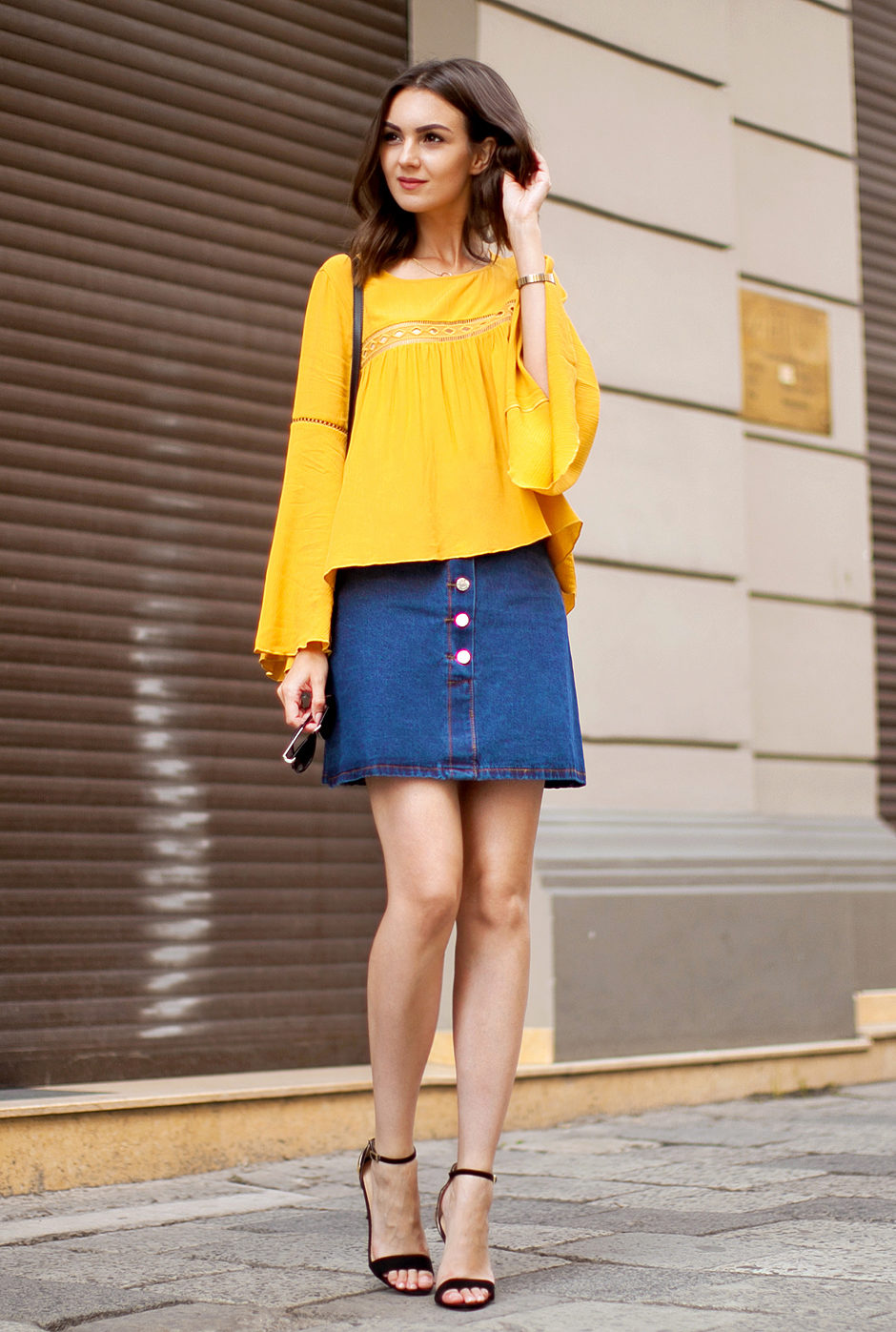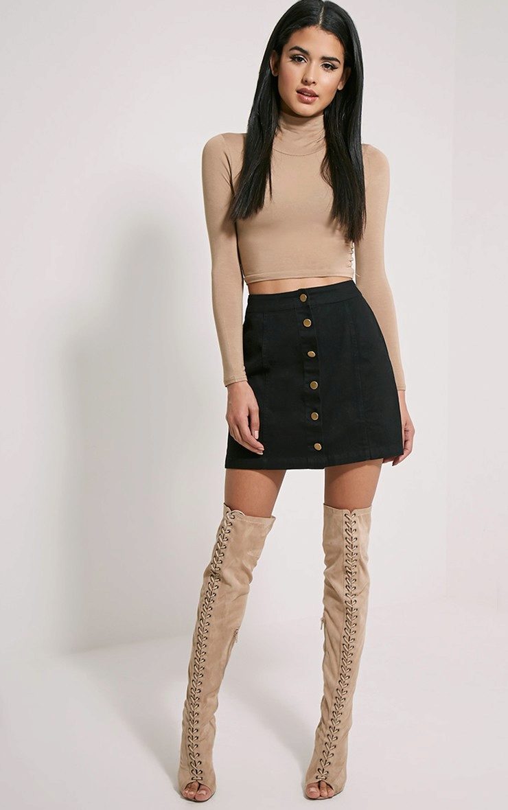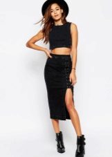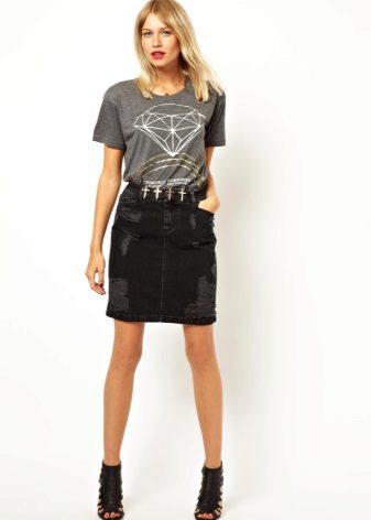 Black denim skirts go well with both formal blouses, shirts and vests, as well as things from everyday wardrobe.