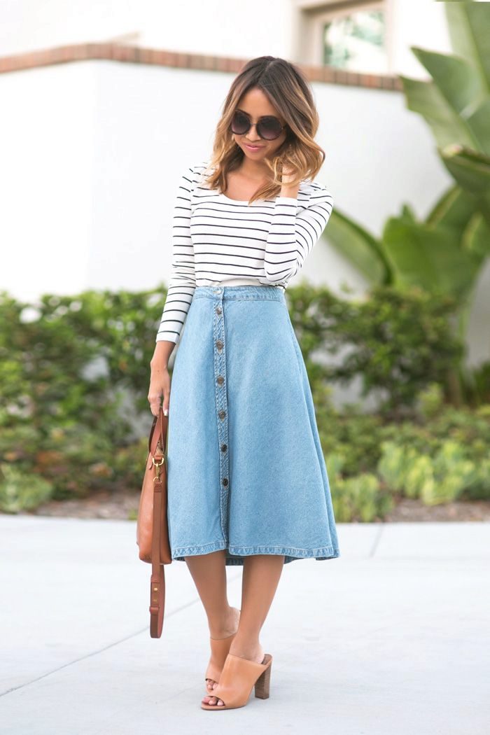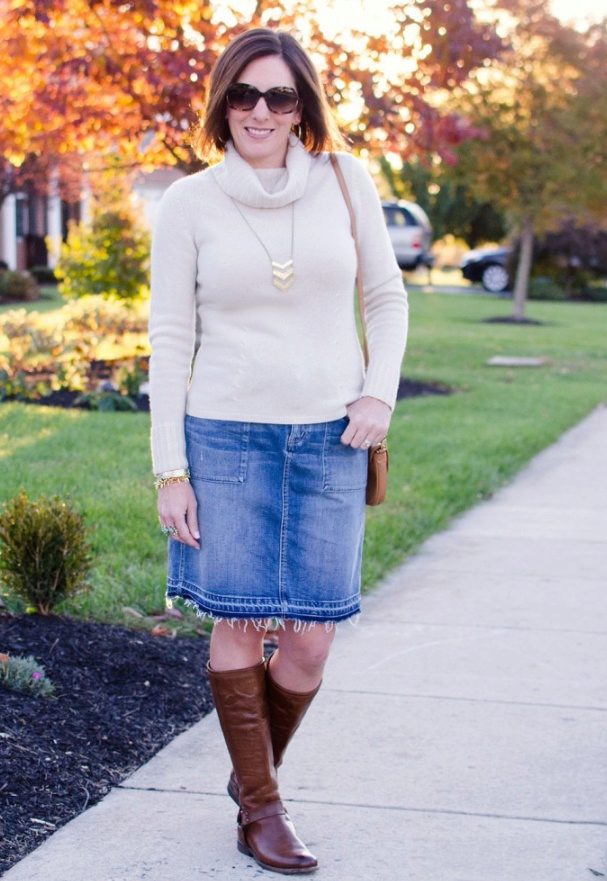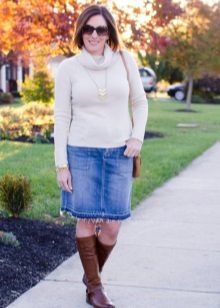 Denim skirt should not be prohibited for adult women. This is a truly universal thing that suits all ages. Even if you think that age obliges you to be strict and elegant in any situation, this is not a reason to refuse to wear comfortable, casual clothes.
