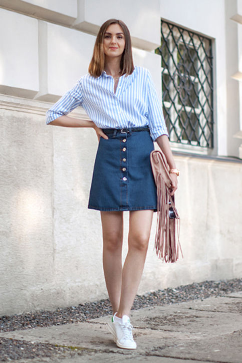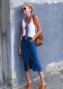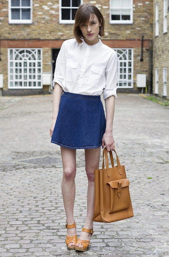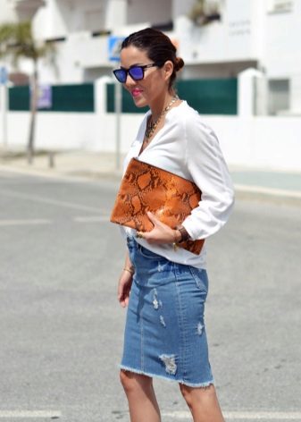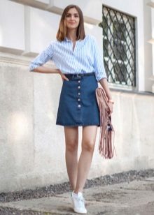A denim skirt and a white shirt are two universal things that can be combined with anything. Together they make up the basic package, which will be appropriate almost everywhere - from the office to a friendly party.