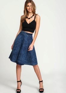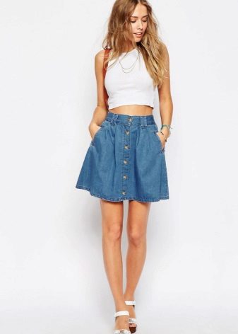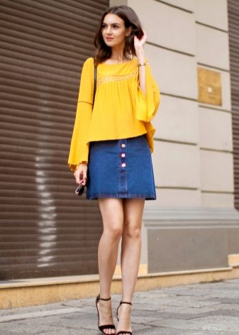 These skirts are most common because it is - something as versatile as jeans. They can be worn with a variety of shoes: with classic shoes, bright sandals, light sandals or cowboy boots: absolutely any option would be appropriate.