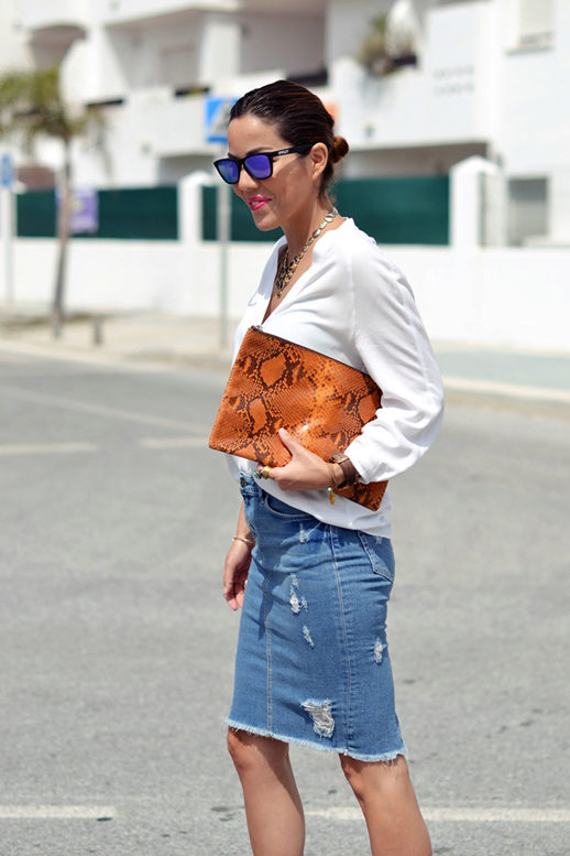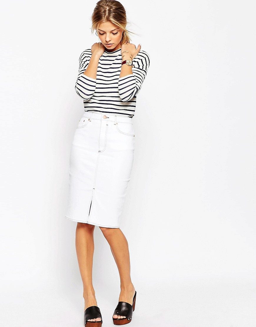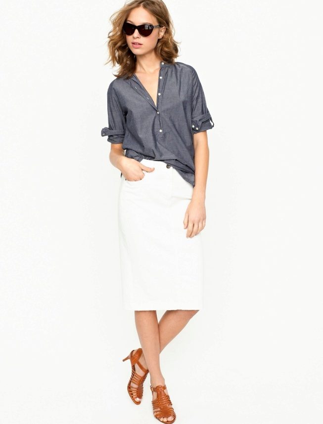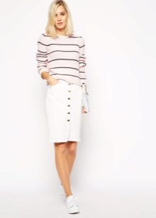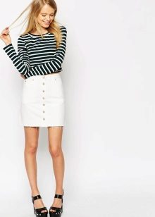 White denim skirt can be combined with the things of rich, juicy shades. Experiment, in search of the most vivid and unusual combinations.