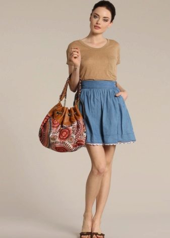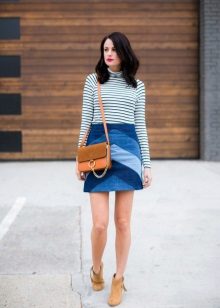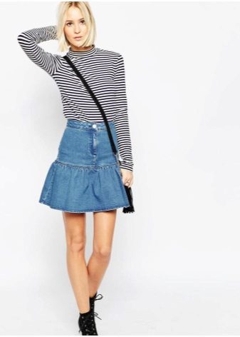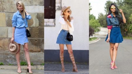 By combining a denim skirt with things of different stylistic orientation, you can create bright, original images. Consider some of the most interesting bows.