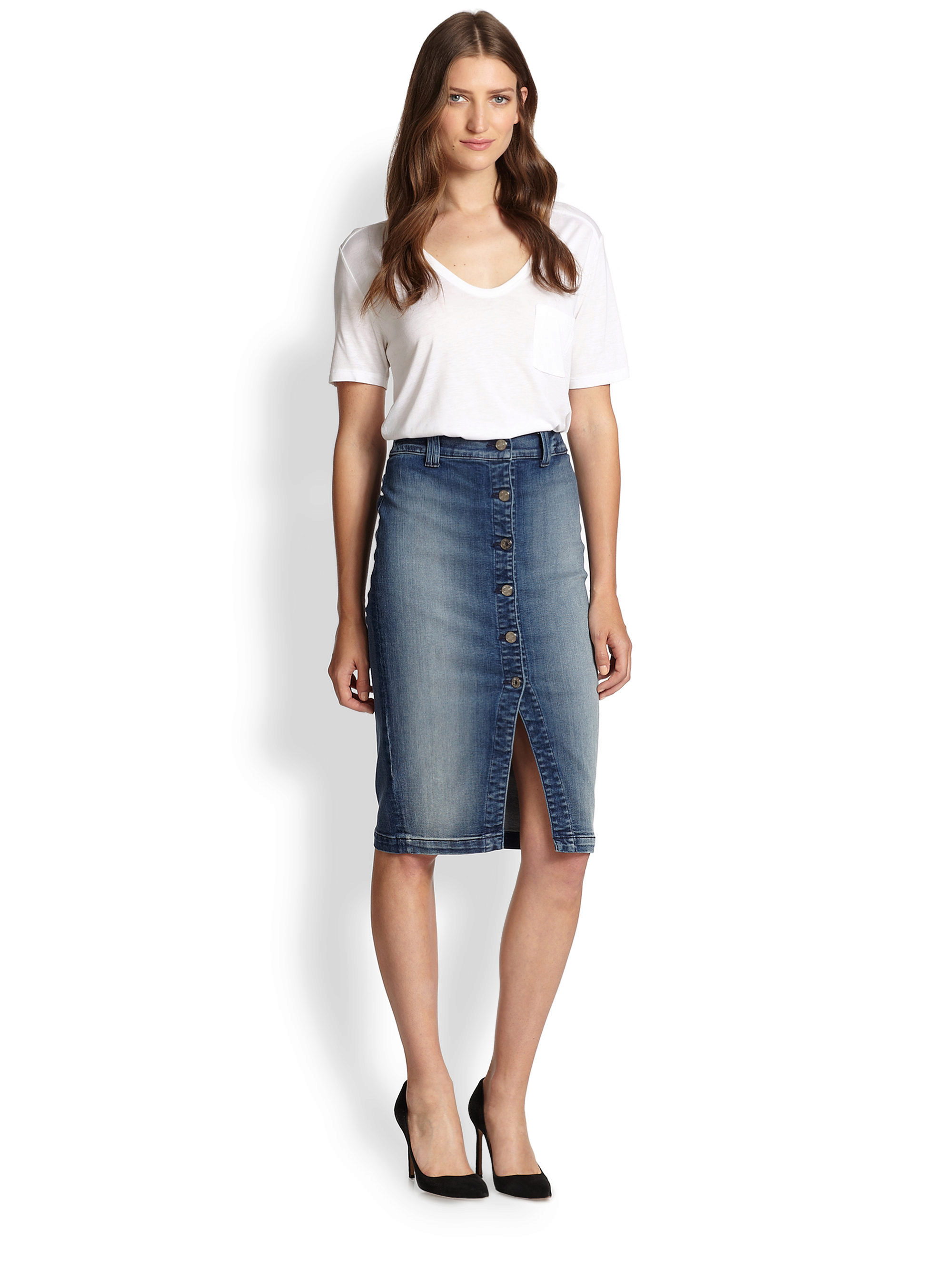 Today, denim skirts exist in many different variations: short, long, straight, flared, tight-fitting, torn, worn, etc. We invite you to meet some of the most interesting denim skirts.