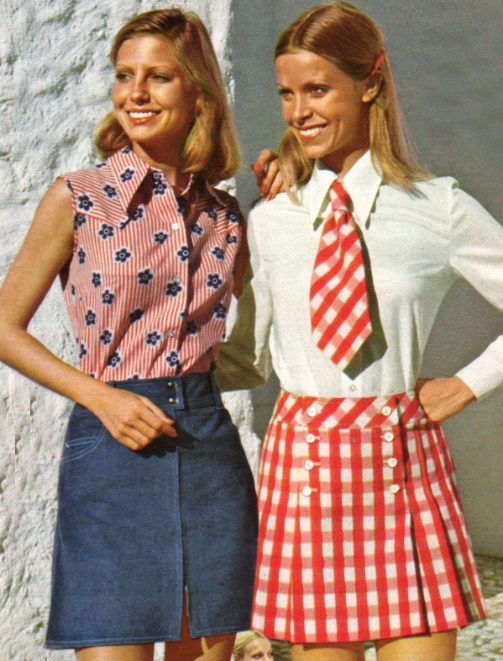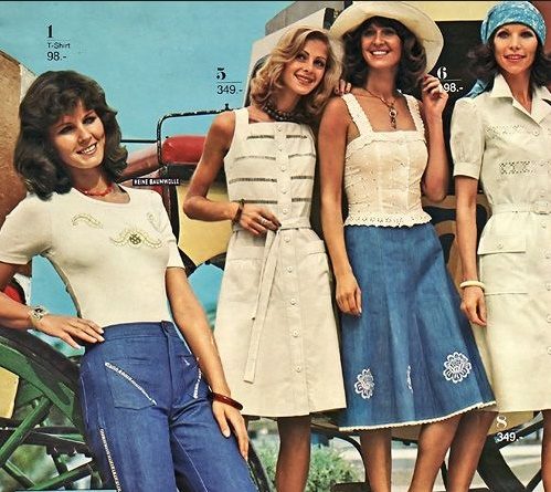 In those days, denim skirts had a straight silhouette and a midi or mini length. The last option was chosen by the most advanced women of fashion to go dancing. Later, when “boiled” jeans became popular, the skirts began to digest along with jeans.