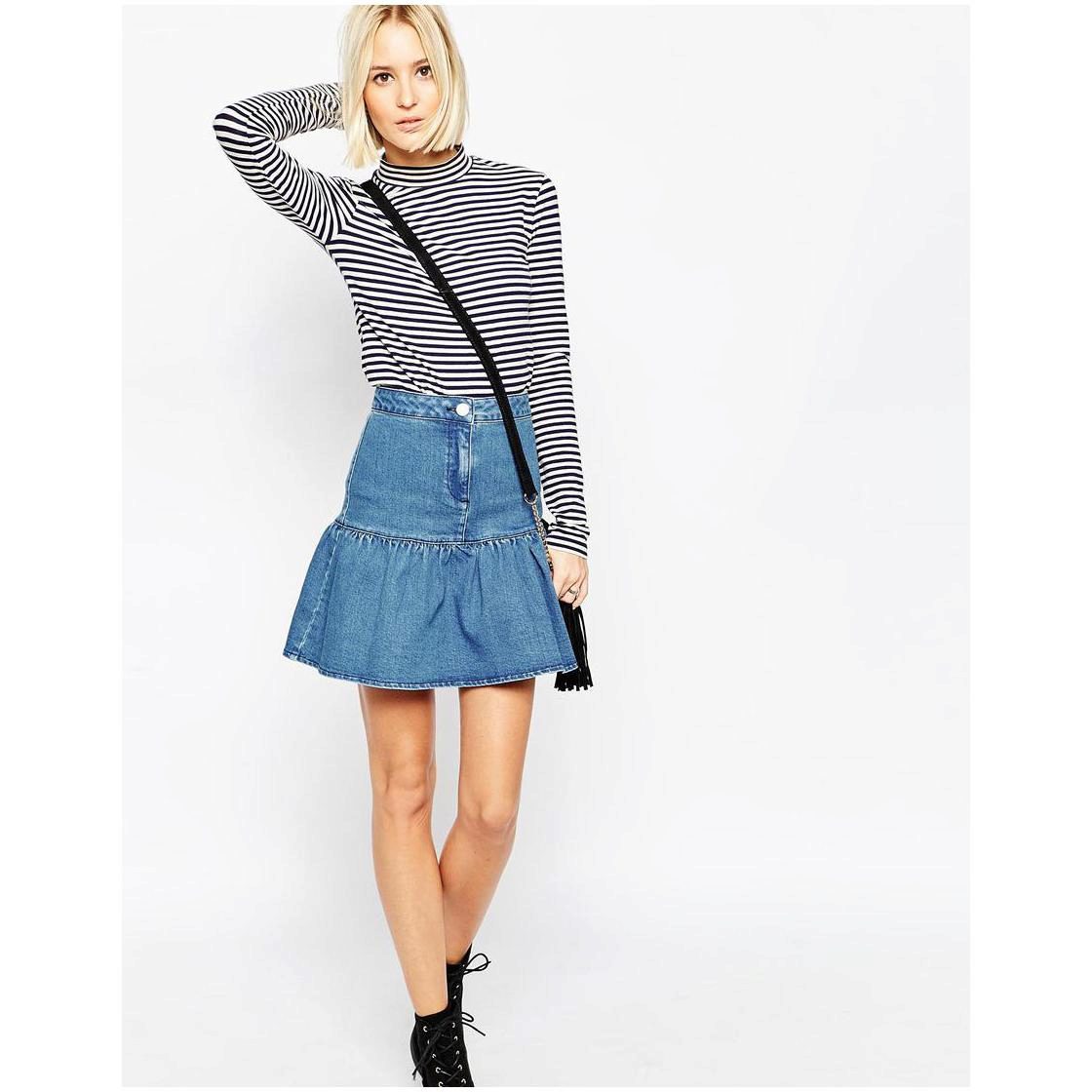 Denim things do not lose their relevance since they first saw the light. Jeans, denim jackets and shorts never go out of fashion, so we get these things for more than one season. Skirts occupy a special place in the denim range. They appeared a little later than other things from this material, but instantly won the love of European and American girls, thanks to the incredible convenience and stylish appearance.