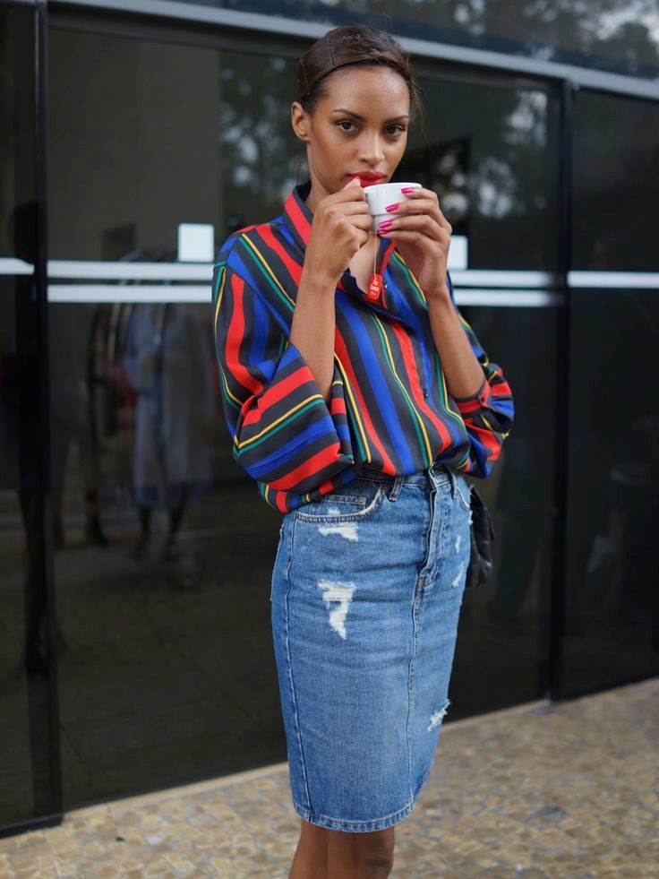 If you want to create a romantic evening image with a pencil skirt from jeans, you can pick up a delicate blouse or a cropped top.